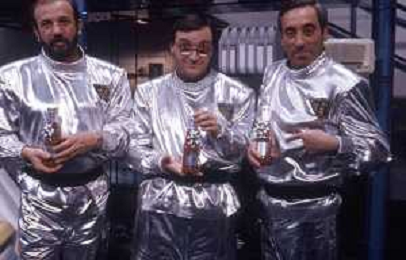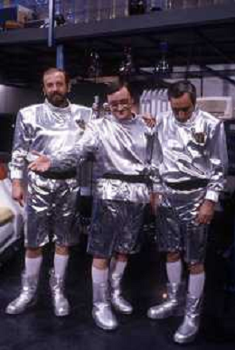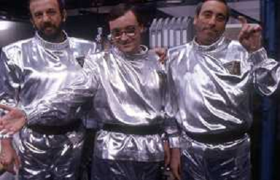 I TRETTRE' , TRIO COMICO NAPOLETANO, COMPOSTO DA GINO COGLIANDRO, EDOARDO ROMANO E MIRKO SETARO NELLA FOTO NEL VARIETA' TELEVISIVO 'TRISITORS' NEL 1989 AG ALDO LIVERANI SAS
