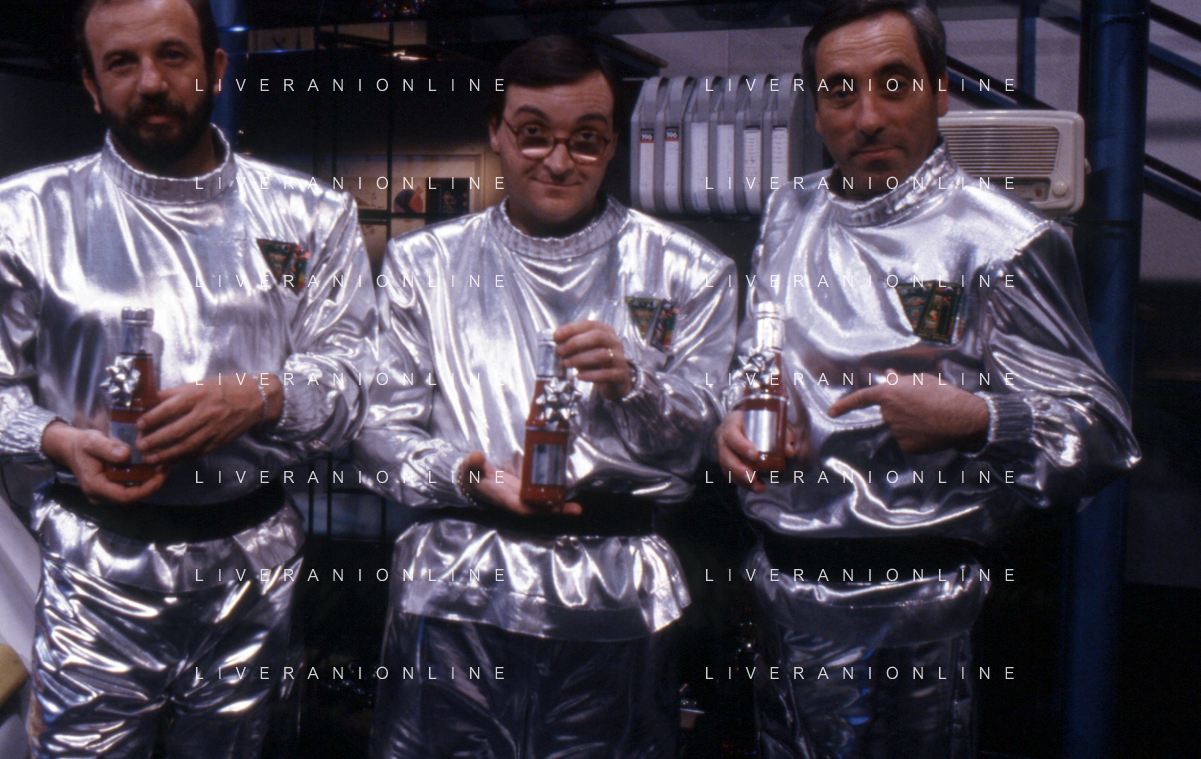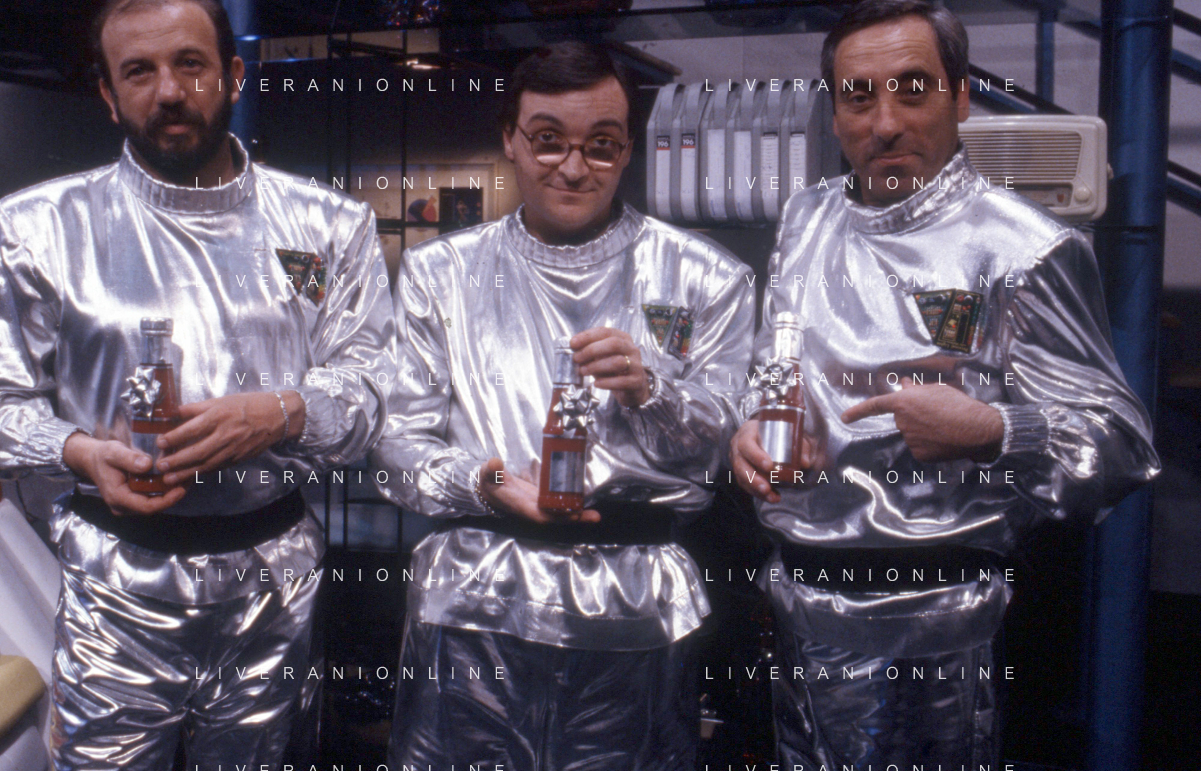 I Trettre' , trio comico napoletano, composto da Gino Cogliandro, Edoardo Romano e Mirko Setaro Nella foto alla conduzione del Tg delle vacanze nel 1991 - Edoardo Romano AG ALDO LIVERANI SAS