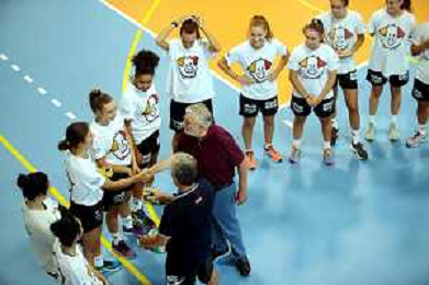 IMOLA 24 08 2022 CLAI IMOLA PALLAVOLO SERIE B1 PRIMO ALLENAMENTO NELLA FOTO SPONSOR GIOVANNI BETTINI SALUTA LE GIOCATRICE foto gianni sanna-ag aldo liverni sas