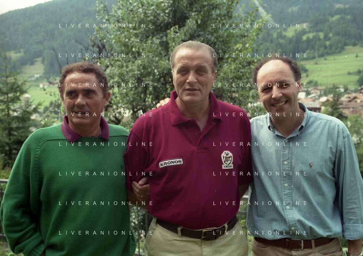 RETROSPETTIVA EMILIO TEMPESTINI VICE PRESIDENTE VENEZIA CALCIO NELLA FOTO EMILIO TEMPESTINI VICE PRESIDENTE DEL VENEZIA CALCIO A MOENA NELL'ANNO 1998 CON GIANNI DI MARZIO E GIUSEPPE MAROTTA AG ALDO LIVERANI SAS