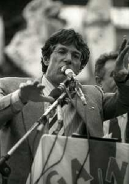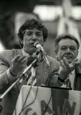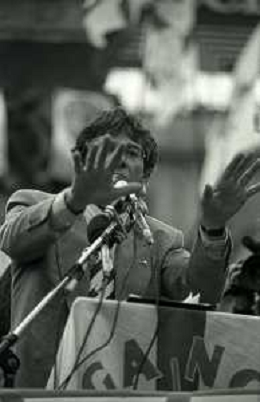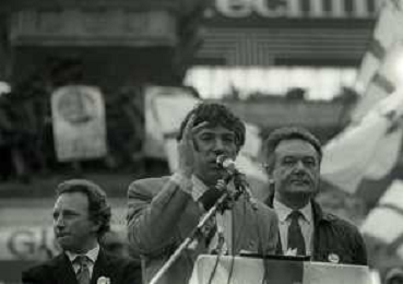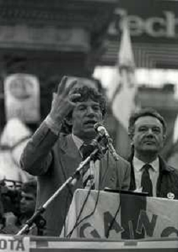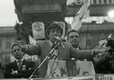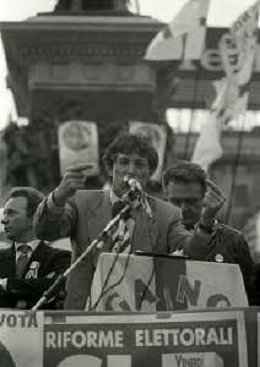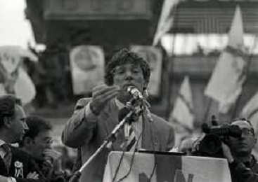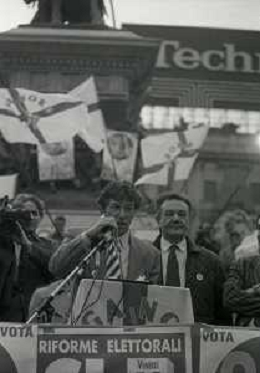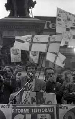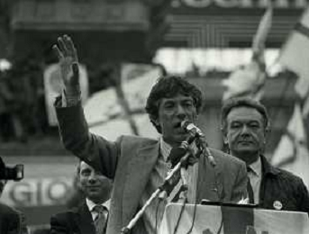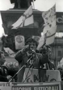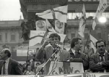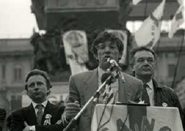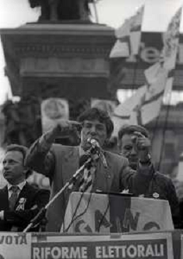 RETROSPETTIVA UMBERTO BOSSI POLITICO LEGA NORD NELLA FOTO UMBERTO BOSSI IN PIAZZA DUOMO A MILANO IL GIORNO 16-04-1993 AG ALDO LIVERANI SAS
