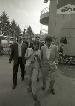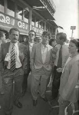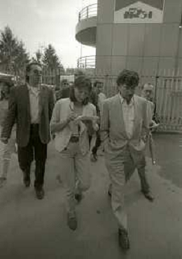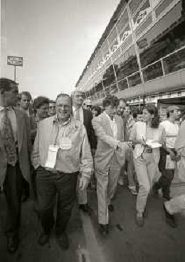 RETROSPETTIVA UMBERTO BOSSI POLITICO LEGA NORD NELLA FOTO UMBERTO BOSSI AL GP DI F1 A MONZA IL GIORNO 11-09-1993 CON MARCO FORMENTINI AG ALDO LIVERANI SAS