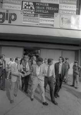 RETROSPETTIVA UMBERTO BOSSI POLITICO LEGA NORD NELLA FOTO UMBERTO BOSSI AL GP DI F1 A MONZA IL GIORNO 11-09-1993 AG ALDO LIVERANI SAS