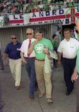 MAGGIO 2000 STADIO DI MONZA PARTITA AMICHEVOLE FORZA ITALIA-LEGA NORDO NELLA FOTO UMBERTO BOSSI CON ROBERTO CALDEROLI AG ALDO LIVERANI SAS