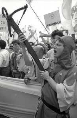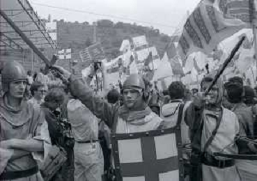 1991 PONTIDA RADUNO LEGA NORD NELLA FOTO MANIFESTANTI DELLA LEGA NORD AG ALDO LIVERANI SAS