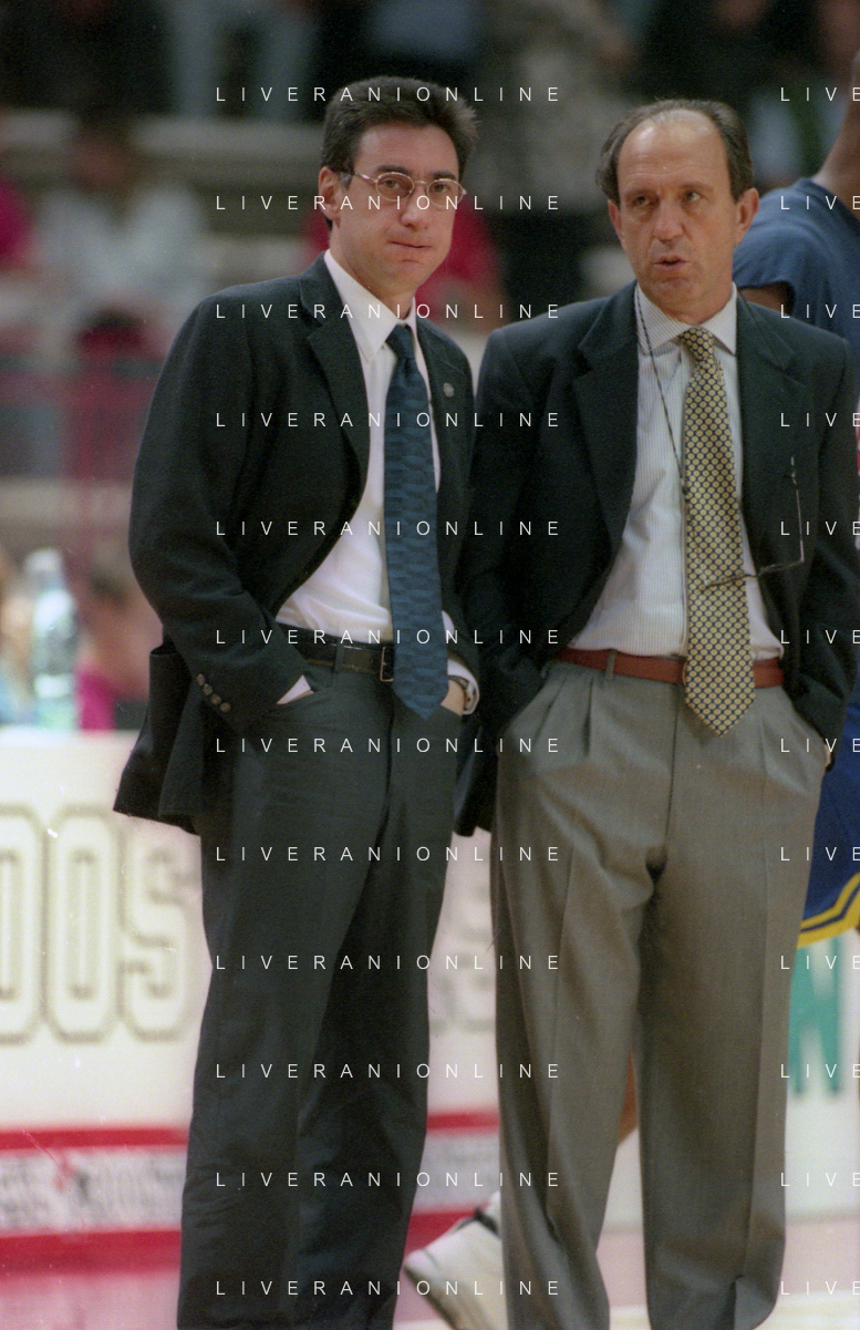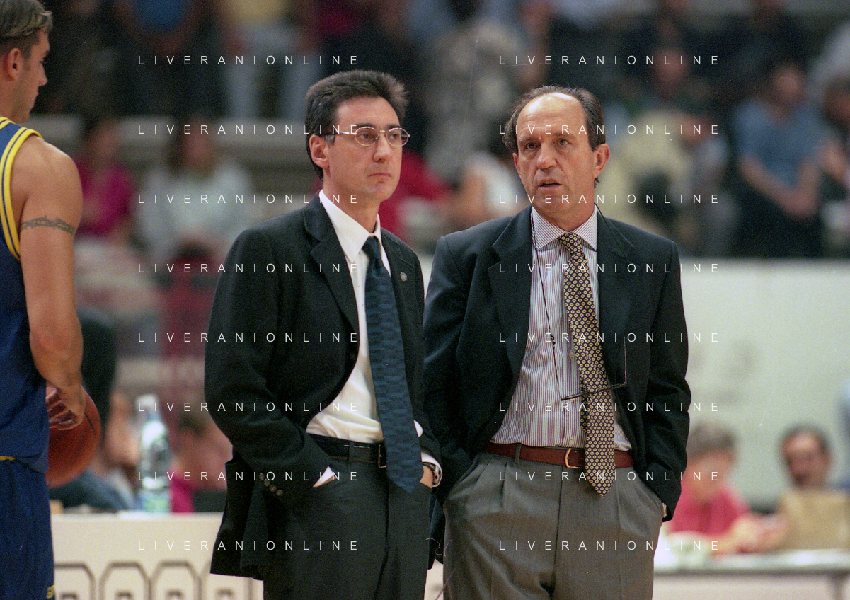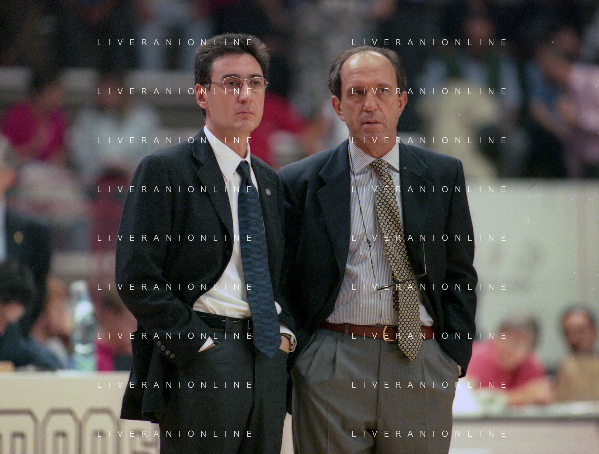 16-09-1999 VARESE CAMPIONATO DI BASKET SERIE A1 VARESE ROOSTER-MULLER VERONA NELLA FOTO MARCELLETTI FRANCO ALLENATORE MULLER VERONA CON IL SUO VICE ALLENATORE FILIPPO FAINA AG ALDO LIVERANI SAS