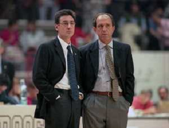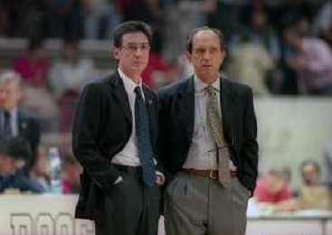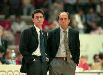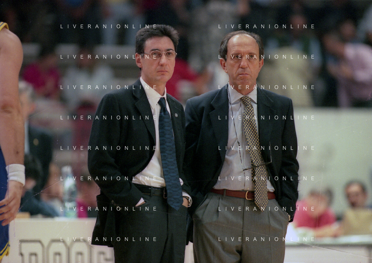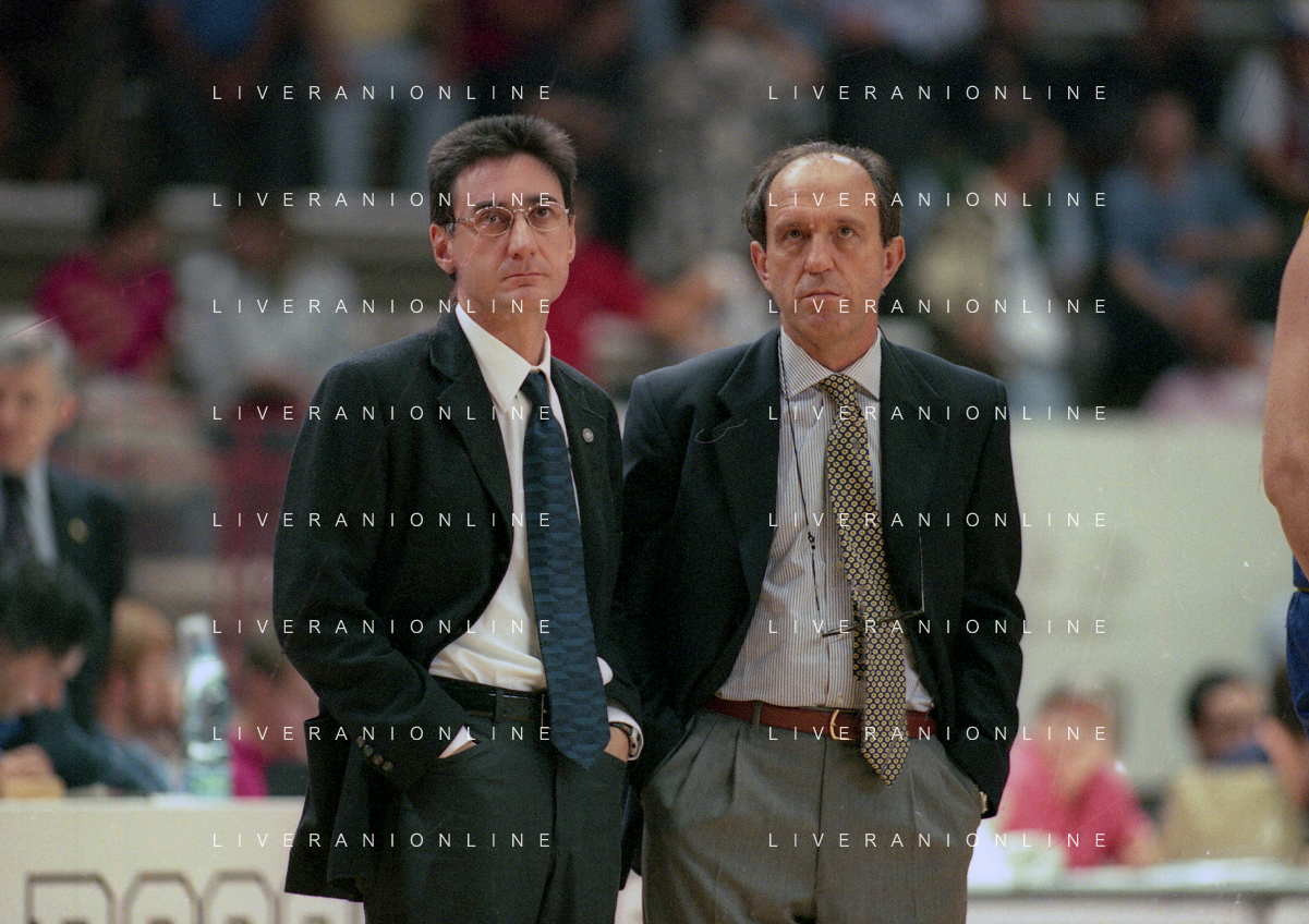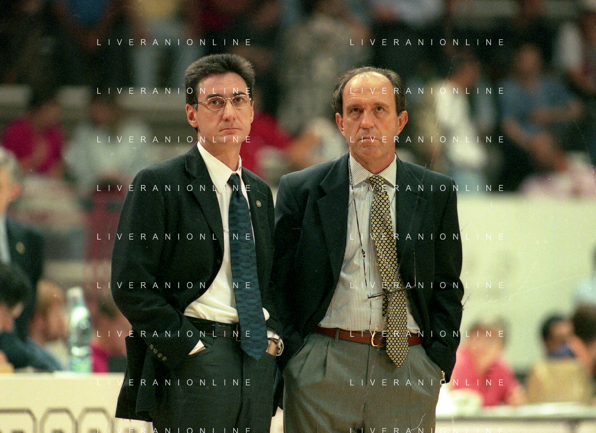 16-09-1999 VARESE CAMPIONATO DI BASKET SERIE A1 VARESE ROOSTER-MULLER VERONA NELLA FOTO MARCELLETTI FRANCO ALLENATORE MULLER VERONA CON IL SUO VICE ALLENATORE FILIPPO FAINA AG ALDO LIVERANI SAS