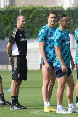 TVMV-Torino 05.09.2022 Continassa © Manuela Viganti/Agenzia Aldo Liverani Allenamento rifinitura Champions League 2022/2023 Paris Saint German vs Juventus Nella foto: massimiliano allegri e dusan vlahovic