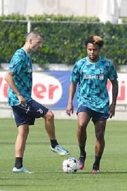 TVMV-Torino 05.09.2022 Continassa © Manuela Viganti/Agenzia Aldo Liverani Allenamento rifinitura Champions League 2022/2023 Paris Saint German vs Juventus Nella foto: leonardo bonucci e weston mckennie