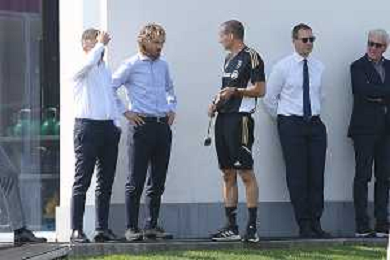TVMV-Torino 05.09.2022 Continassa © Manuela Viganti/Agenzia Aldo Liverani Allenamento rifinitura Champions League 2022/2023 Paris Saint German vs Juventus Nella foto: pavel nedved e massimiliano allegri