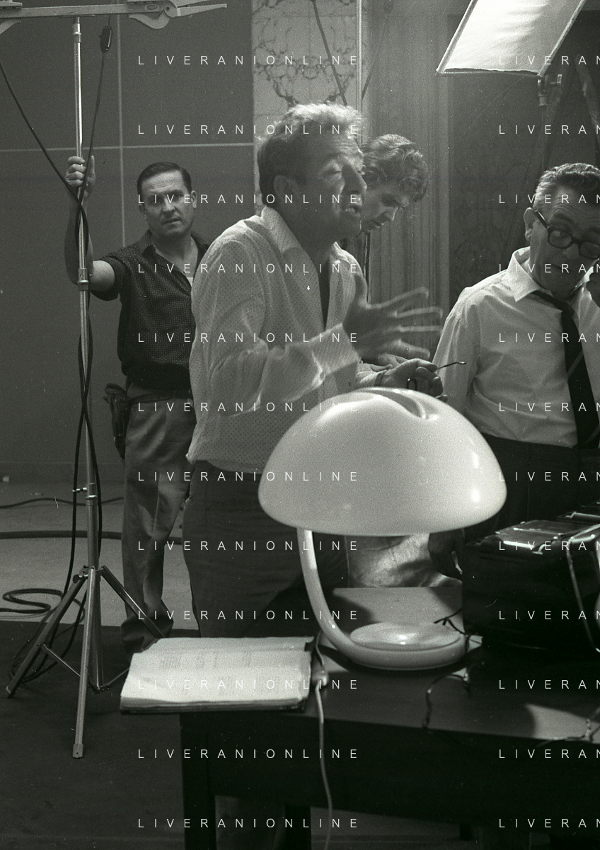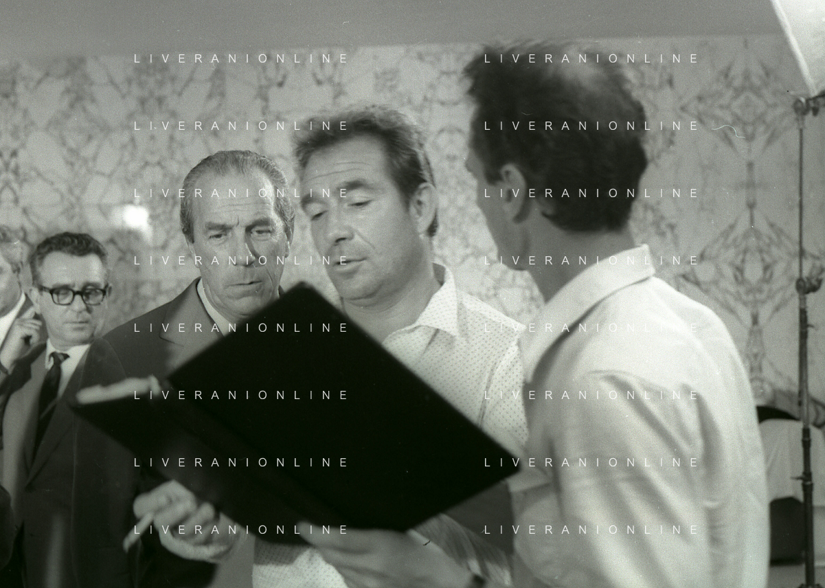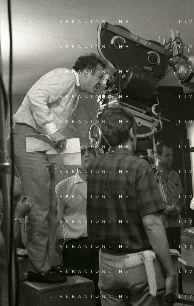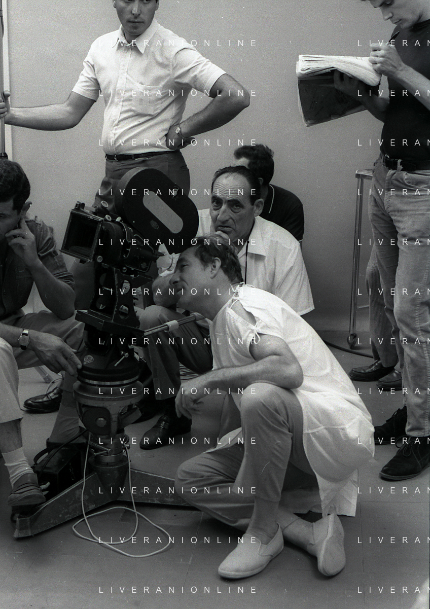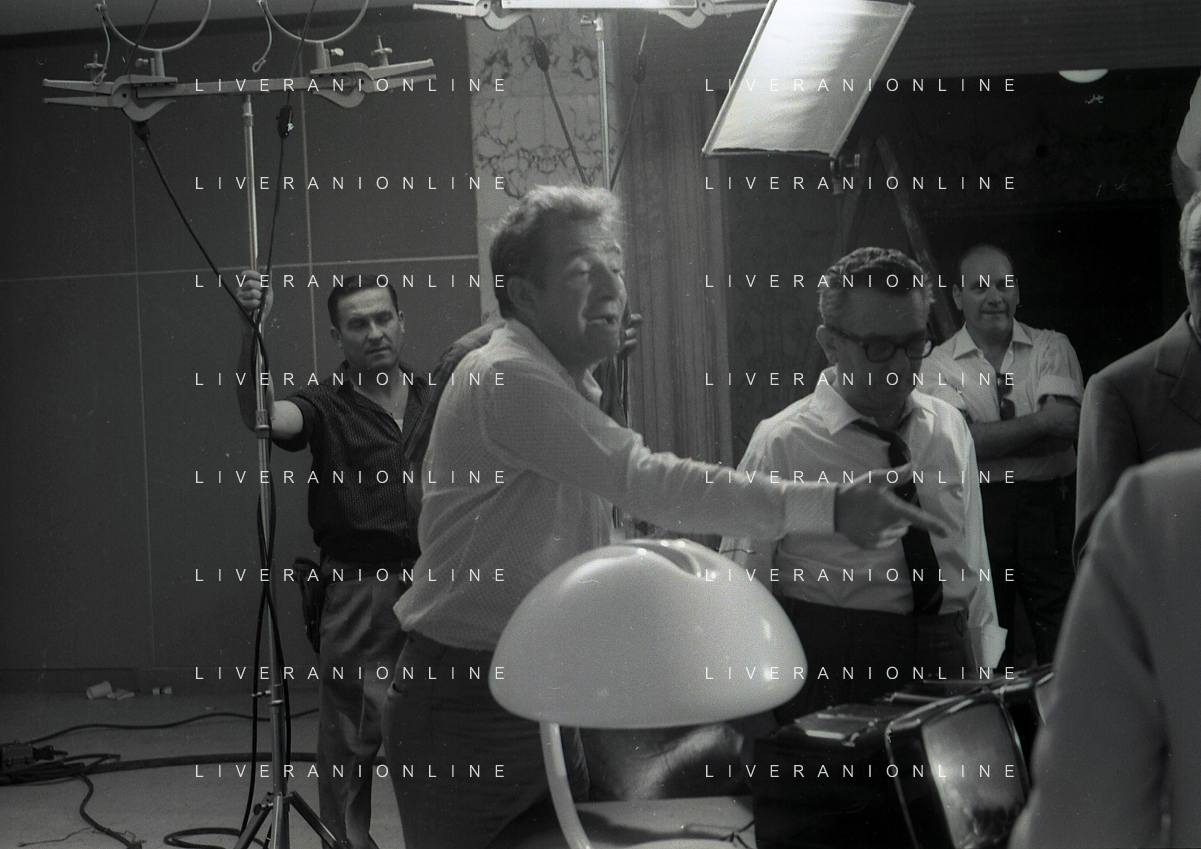 RETROSPETTIVA UGO TOGNAZZI ATTORE NELLA FOTO UGO TOGNAZZI SUL SET DEL FILM “IL FISCHIO AL NASO “NELL'ANNO 1967 AG ALDO LIVERANI SAS