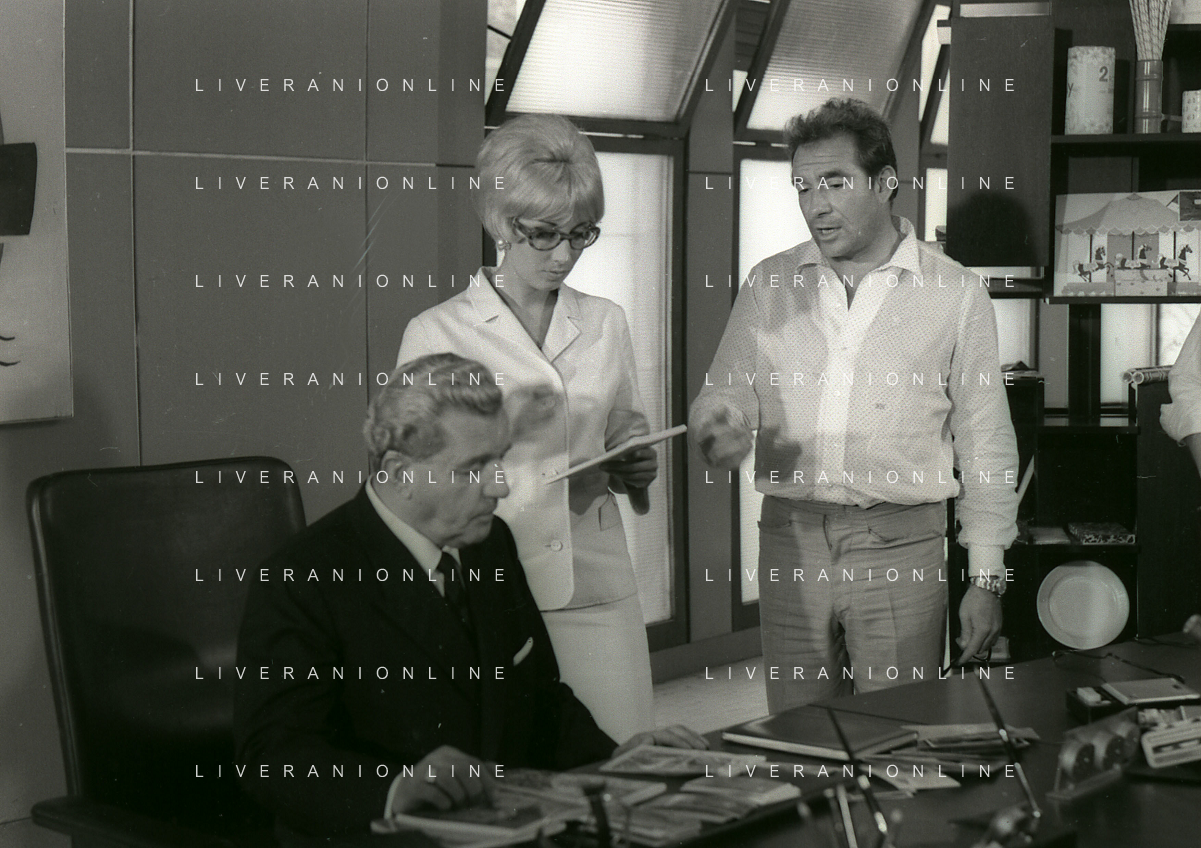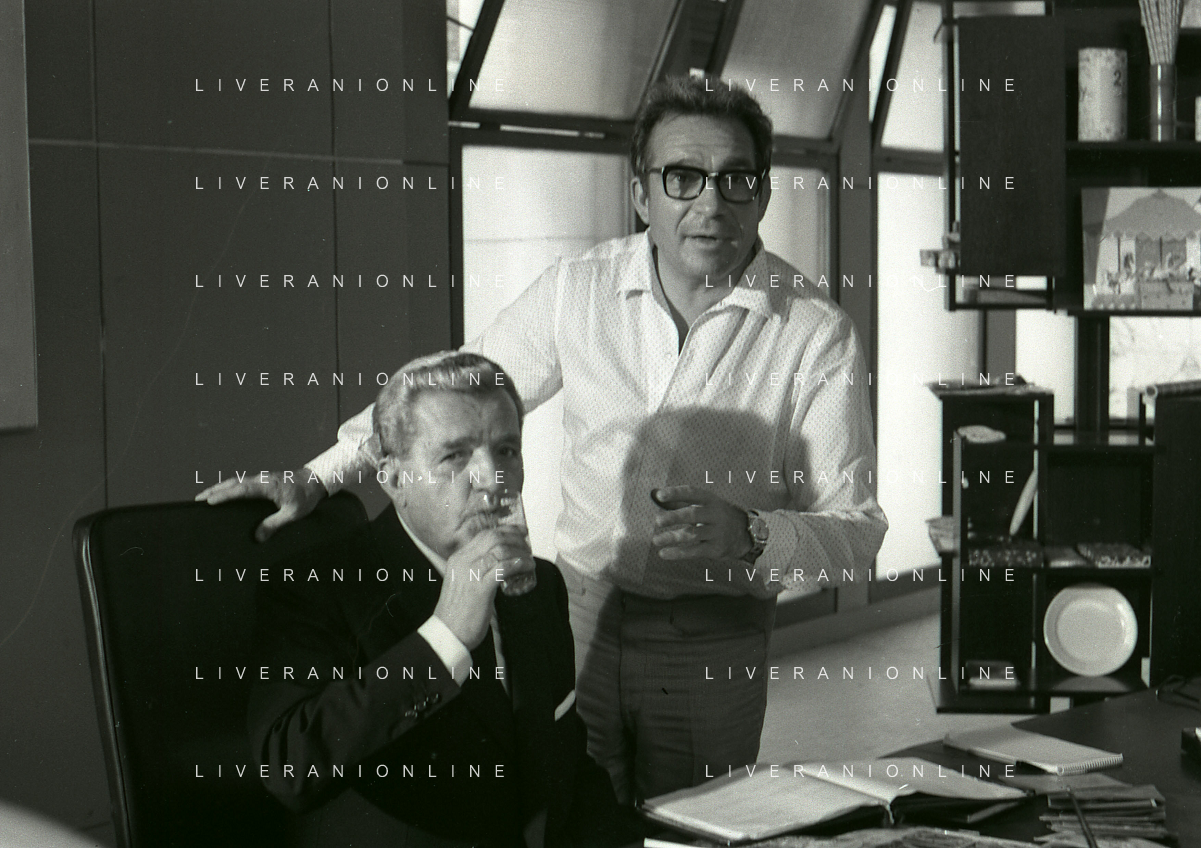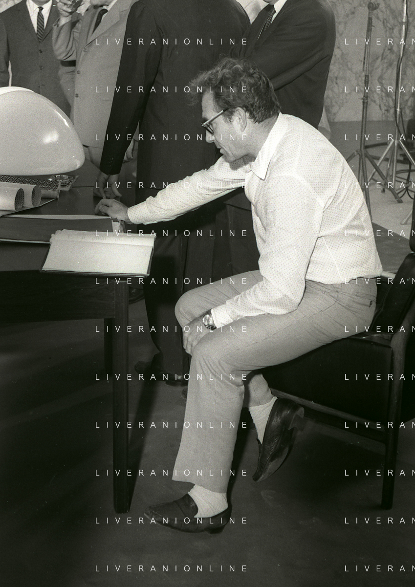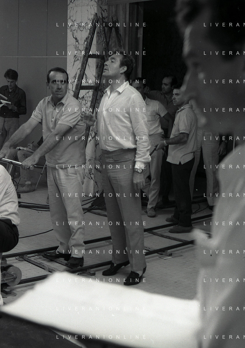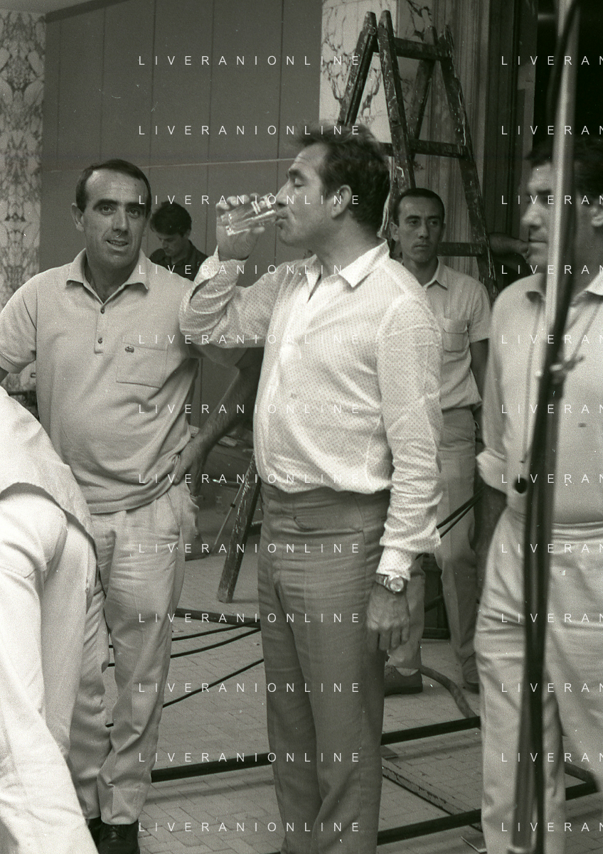 RETROSPETTIVA UGO TOGNAZZI ATTORE NELLA FOTO UGO TOGNAZZI SUL SET DEL FILM “IL FISCHIO AL NASO “NELL'ANNO 1967 AG ALDO LIVERANI SAS