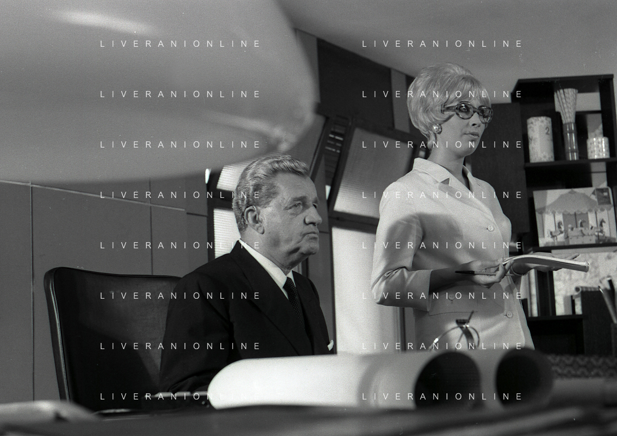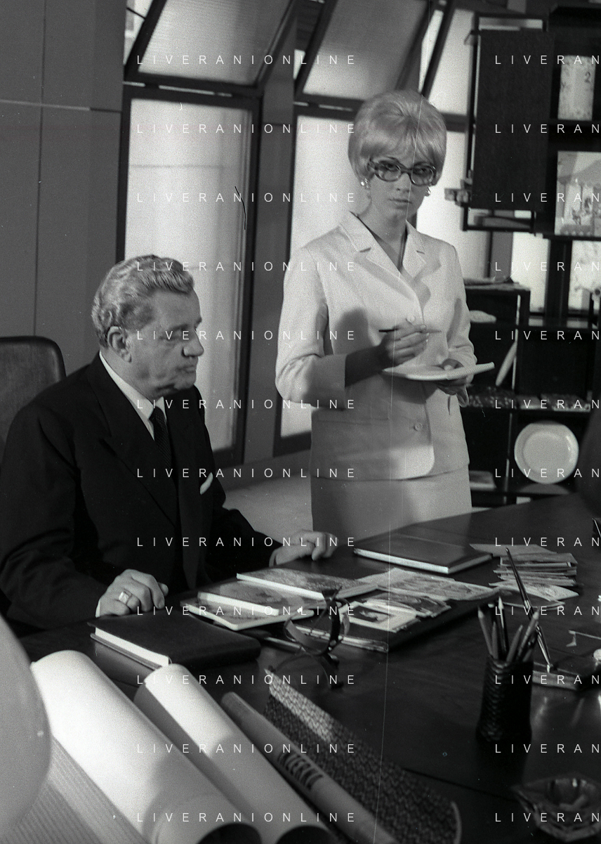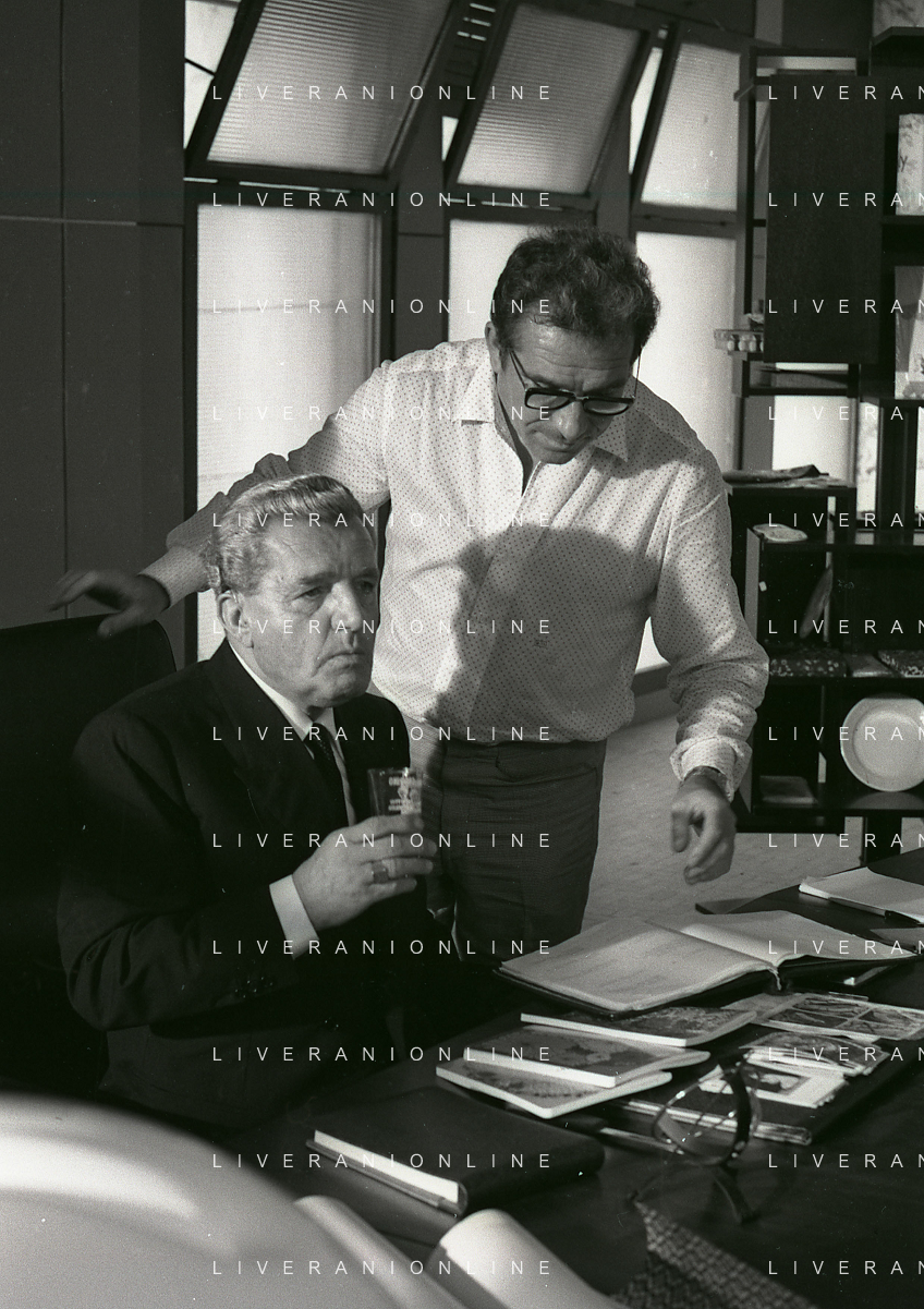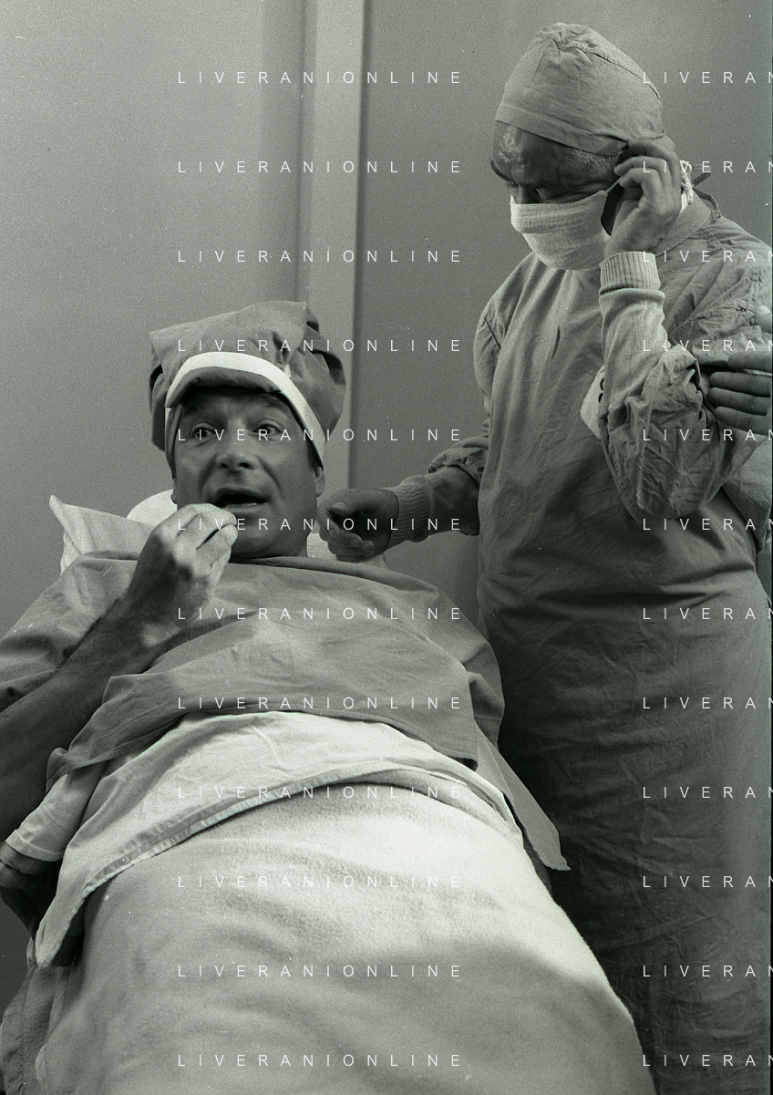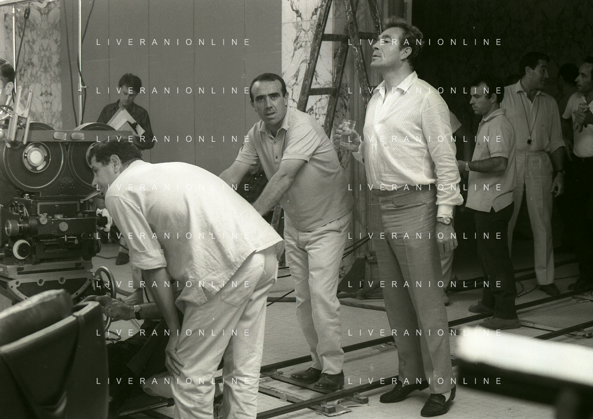 RETROSPETTIVA UGO TOGNAZZI ATTORE NELLA FOTO UGO TOGNAZZI SUL SET DEL FILM “IL FISCHIO AL NASO “NELL'ANNO 1967 AG ALDO LIVERANI SAS