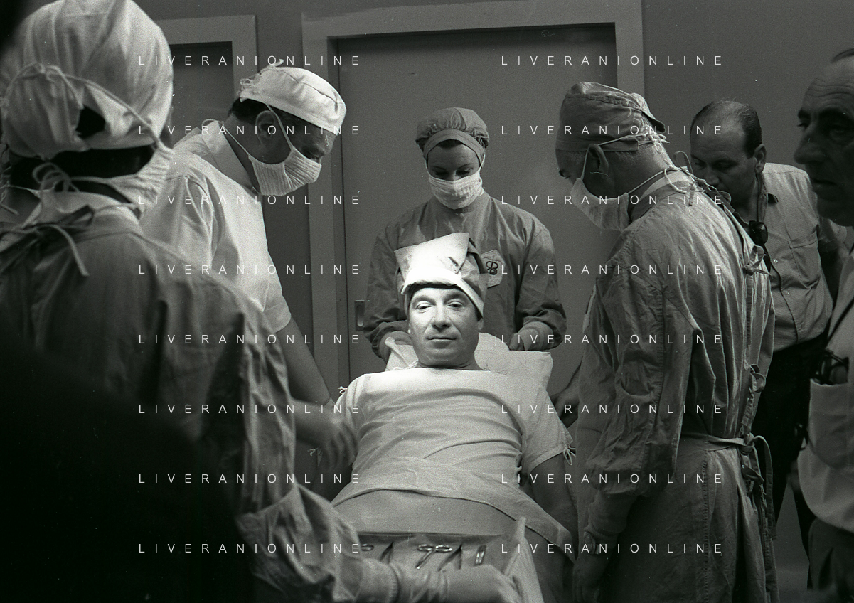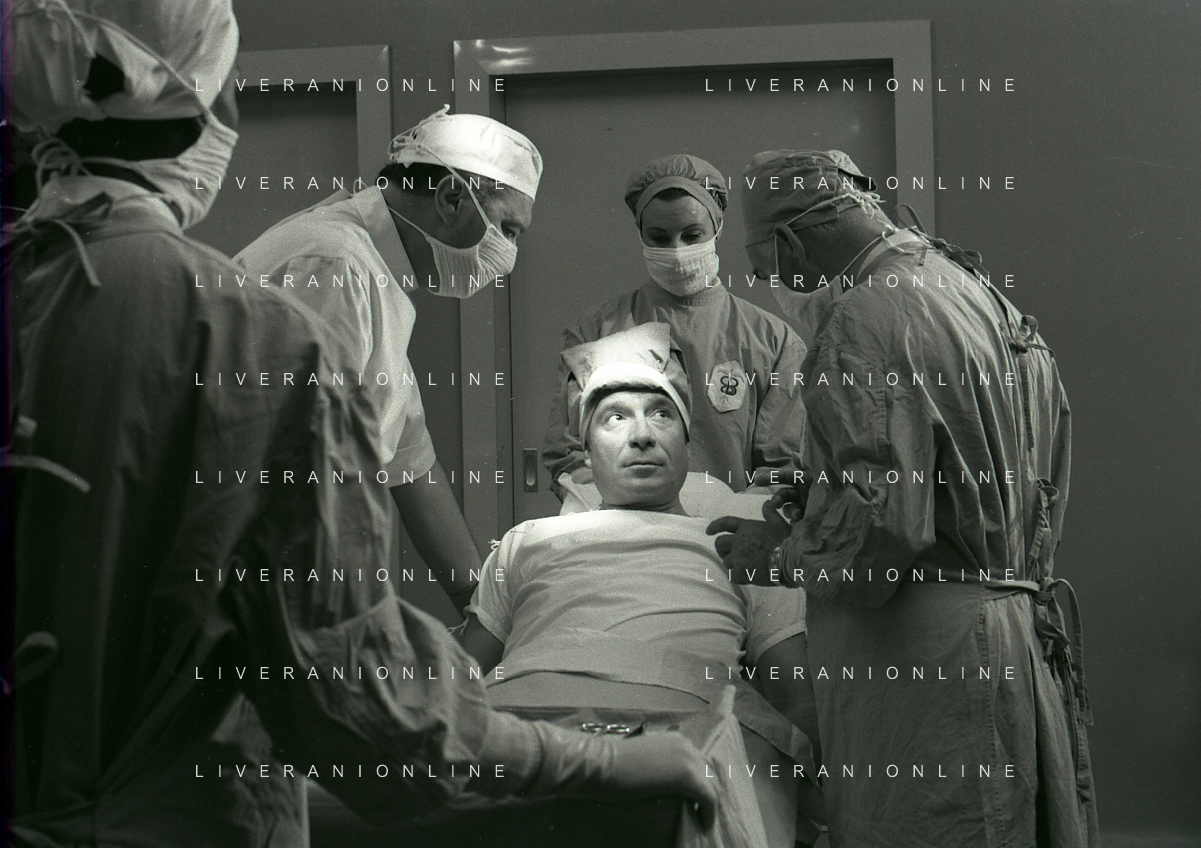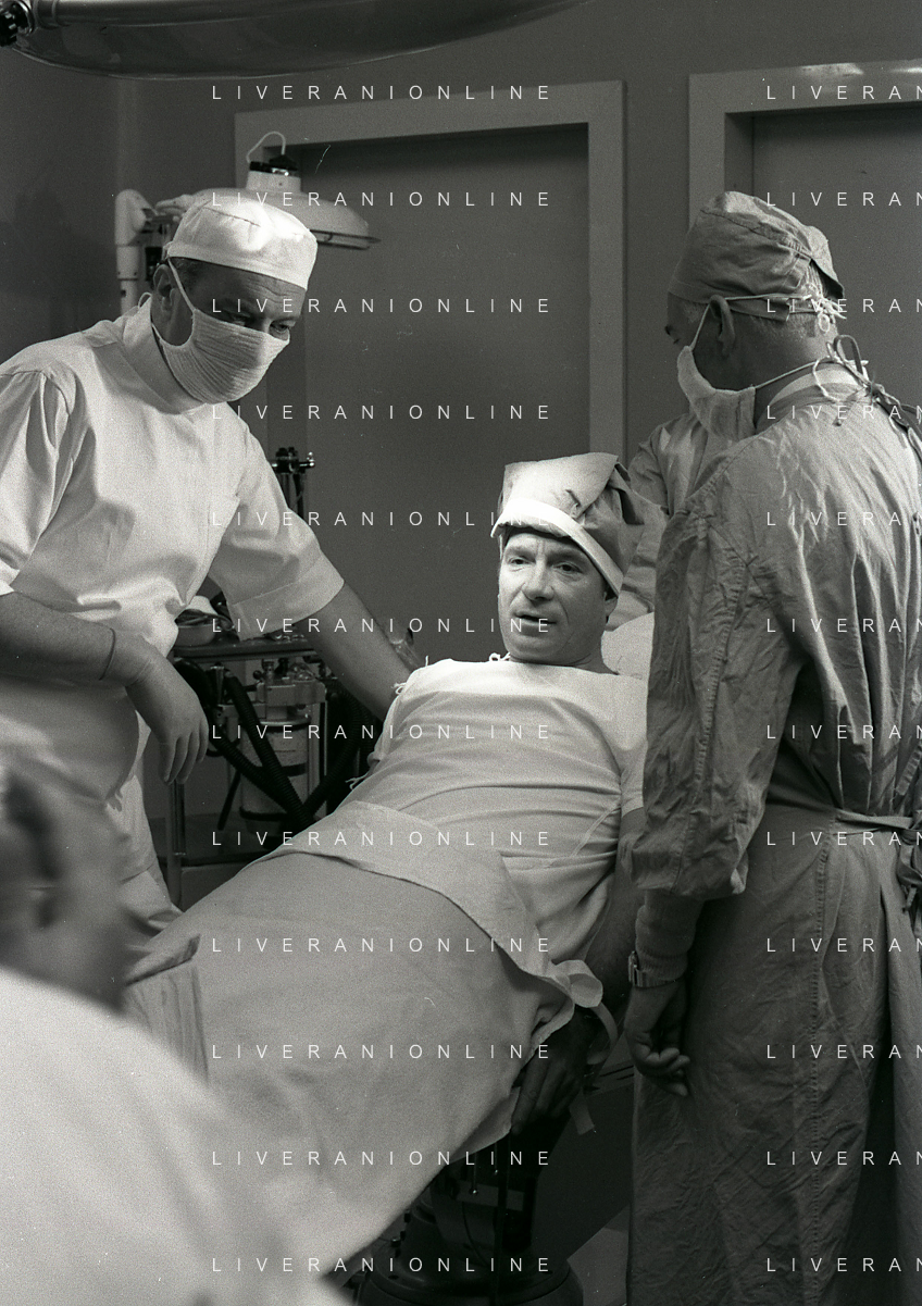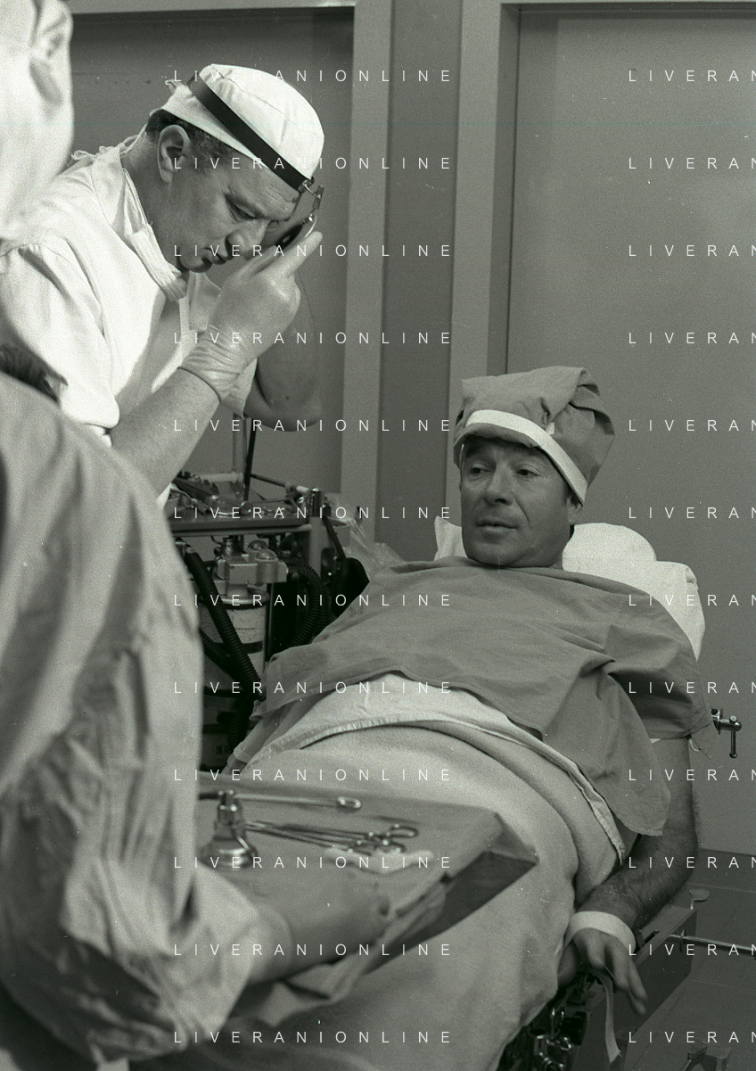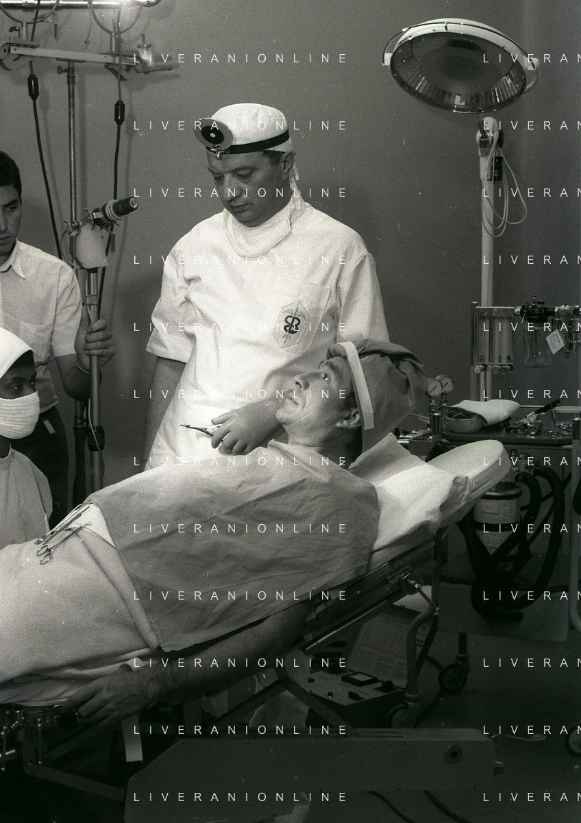 RETROSPETTIVA UGO TOGNAZZI ATTORE NELLA FOTO UGO TOGNAZZI SUL SET DEL FILM “IL FISCHIO AL NASO “NELL'ANNO 1967 AG ALDO LIVERANI SAS