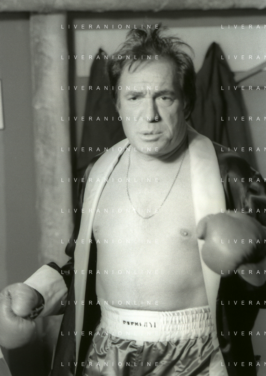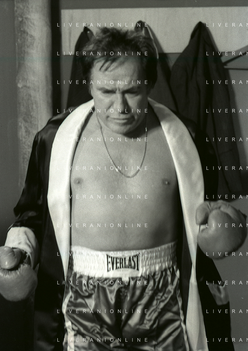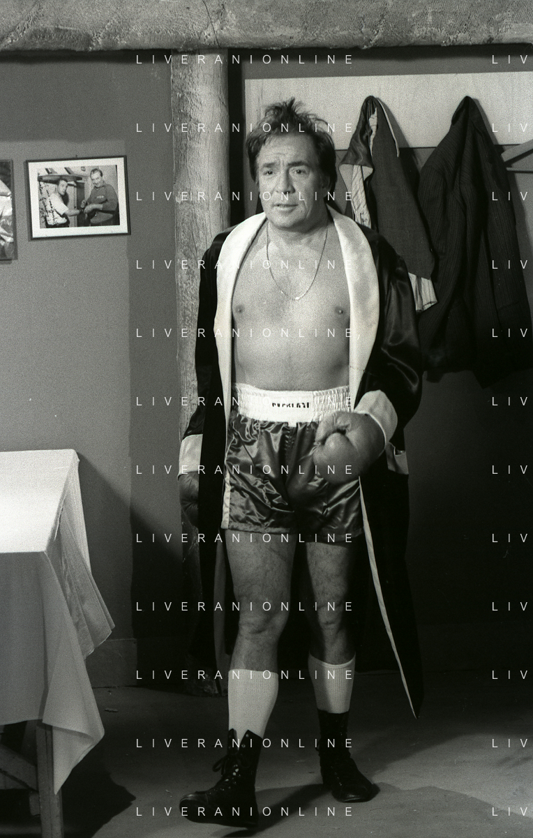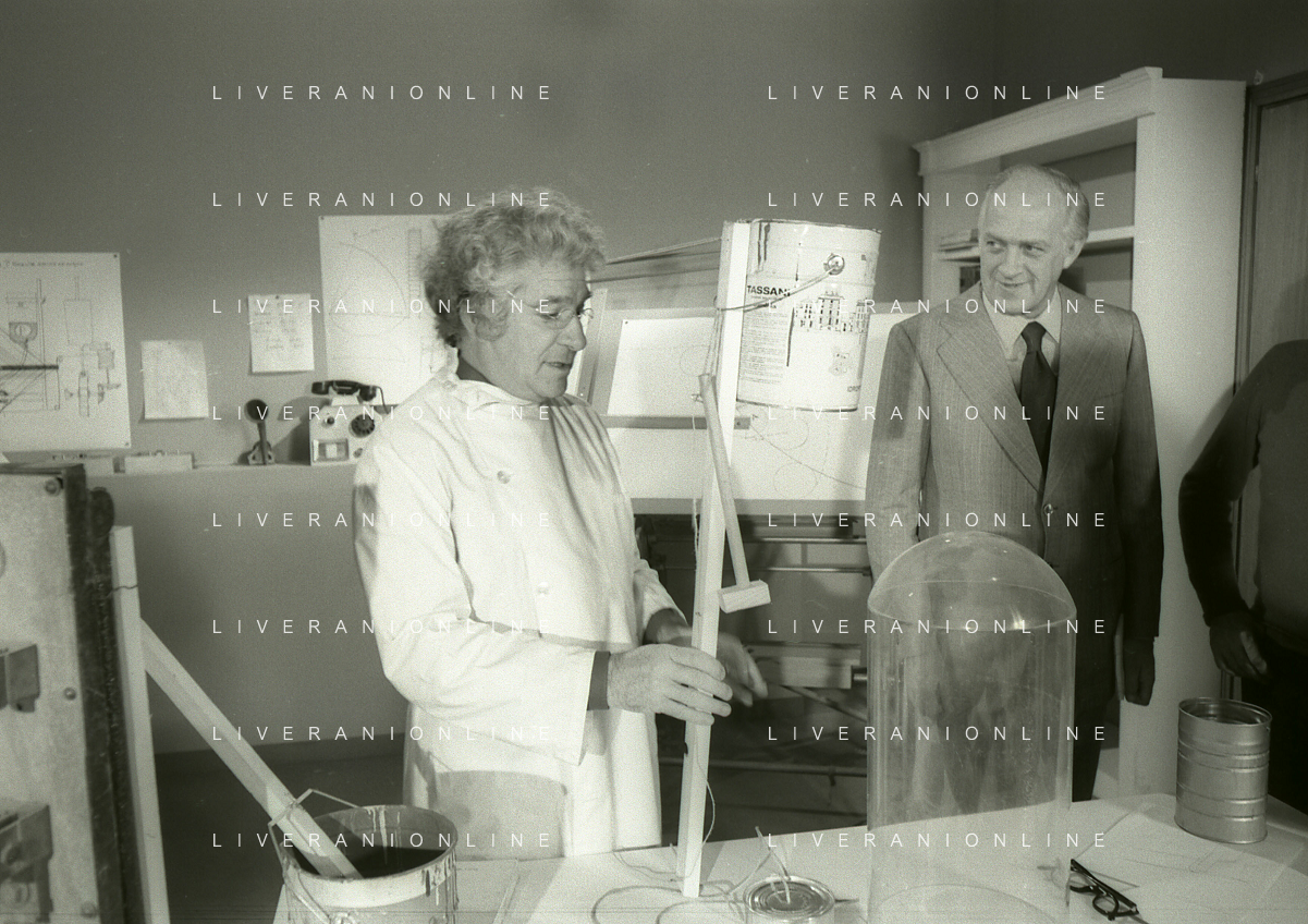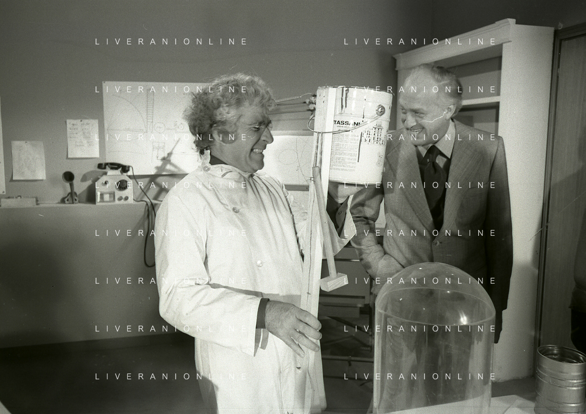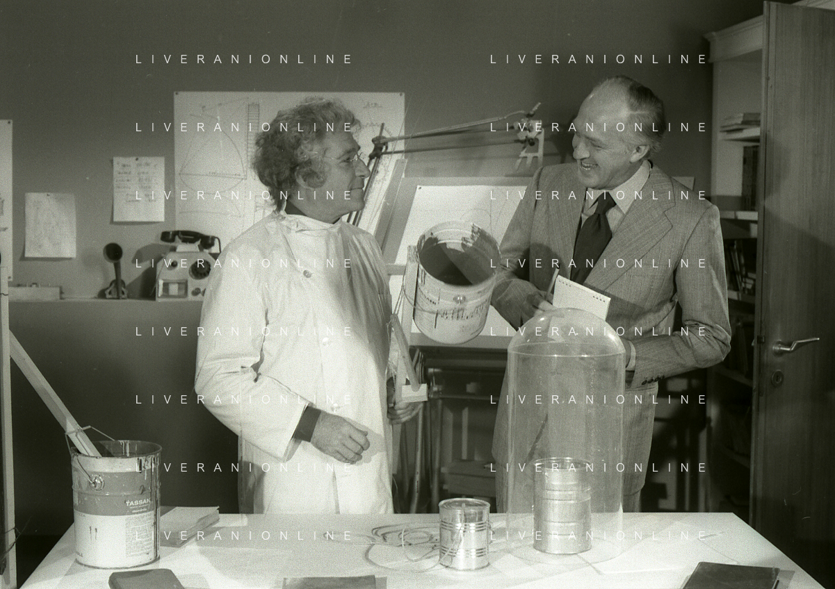 RETROSPETTIVA UGO TOGNAZZI ATTORE NELLA FOTO UGO TOGNAZZI SET DEL “CAROSELLO PUBBLICITA STOCK“ NELL'ANNO 1973 CON RAIMONDO VIANELLO AG ALDO LIVERANI SAS