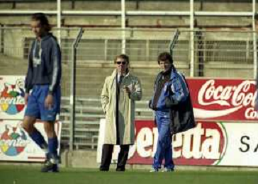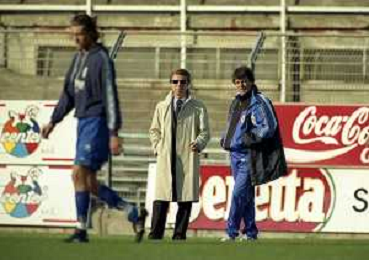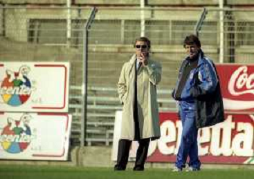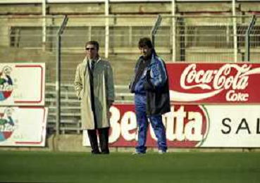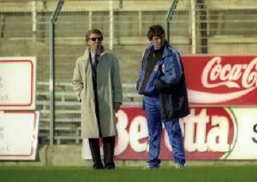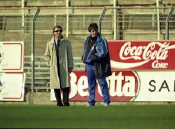 16-11-1997 COMO CAMPIONATO DI CALCIO SERIE C COMO-CARRARESE 2-2 NELLA FOTO ENRICO PREZIOSI PRESIDENTE DEL COMO CALCIO CON L'ALLENATORE DEL COMO ENRICO CATUZZI AG ALDO LIVERANI SAS