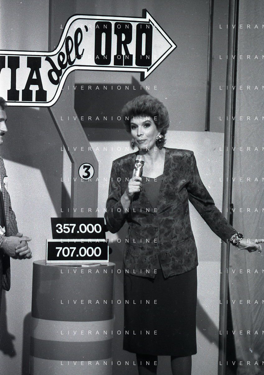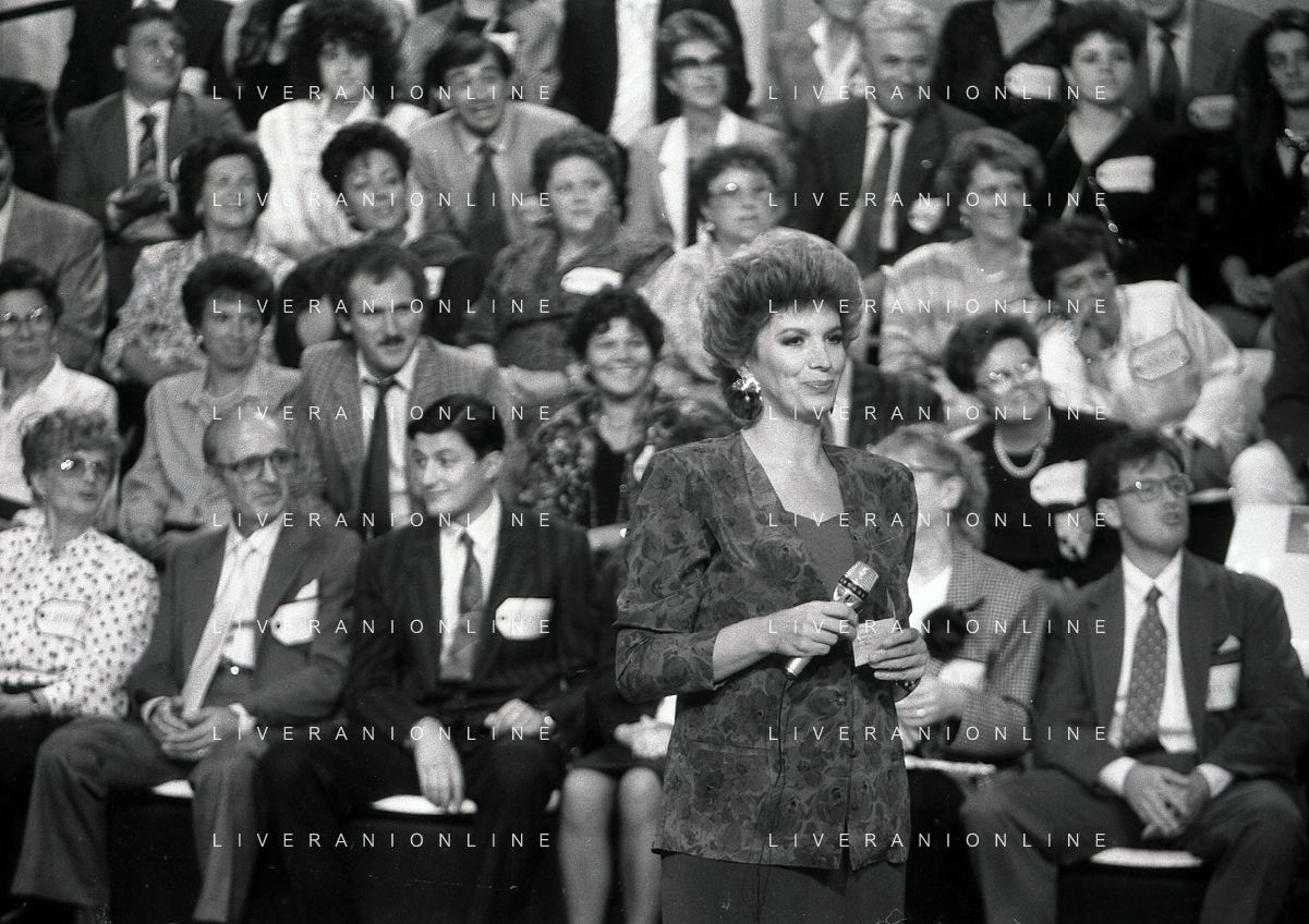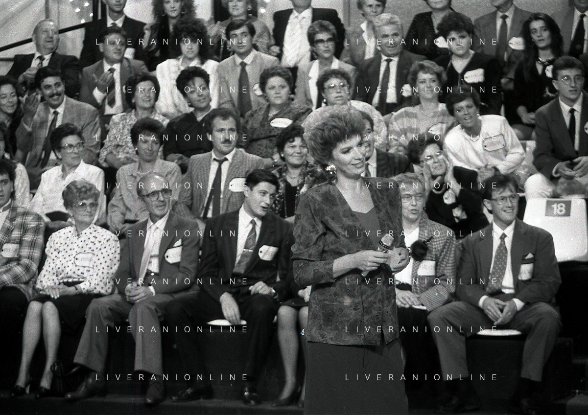 1988 TRASMISSIONE TELEVISIVA OK IL PREZZO E' GIUSTO NELLA FOTO IVA ZANICCHI CONDUCE LA TRASMISSIONE TELEVISIVA OK IL PREZZO E' GIUSTO AG ALDO LIVERANI SAS