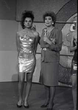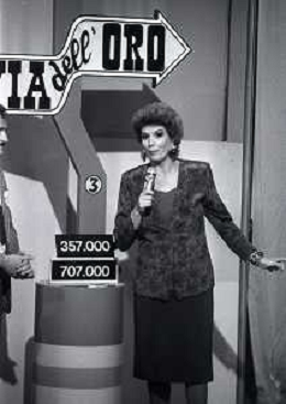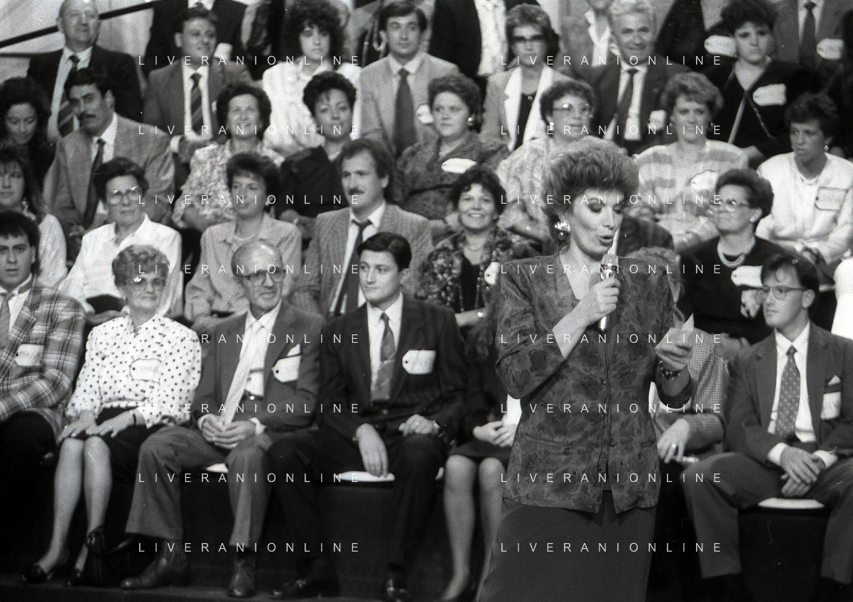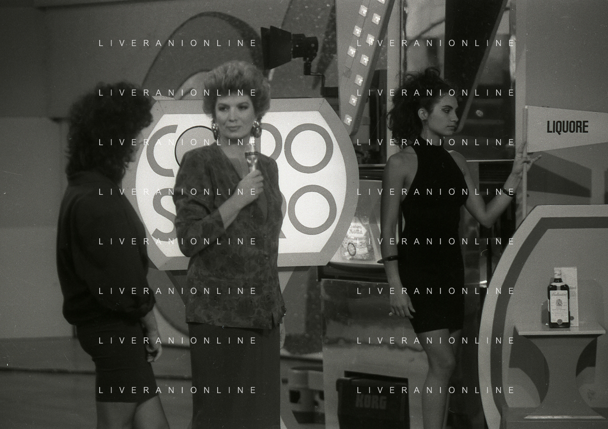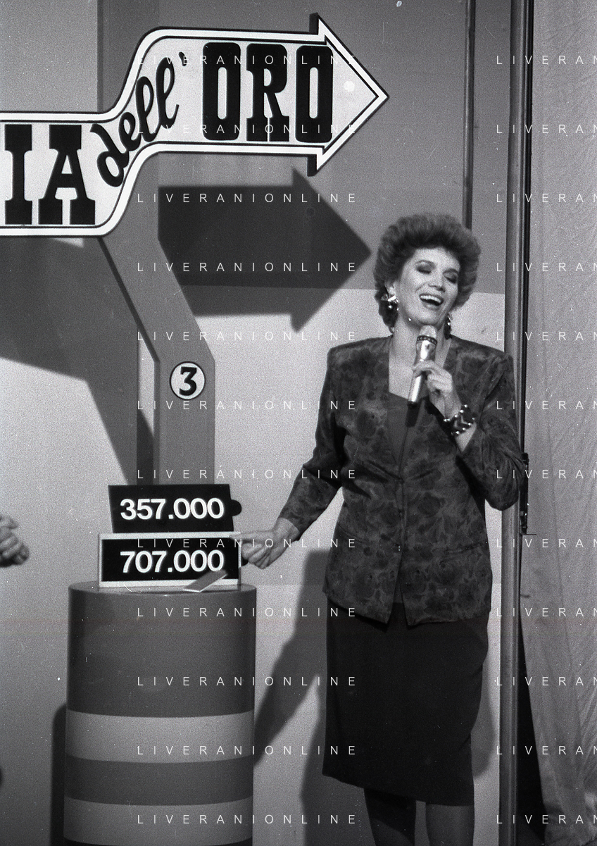 1988 TRASMISSIONE TELEVISIVA OK IL PREZZO E' GIUSTO NELLA FOTO IVA ZANICCHI CONDUCE LA TRASMISSIONE TELEVISIVA OK IL PREZZO E' GIUSTO AG ALDO LIVERANI SAS