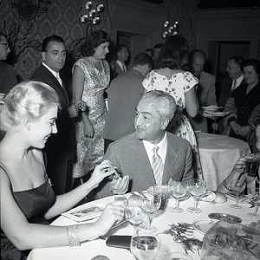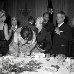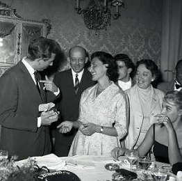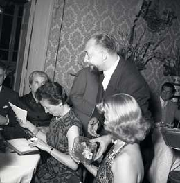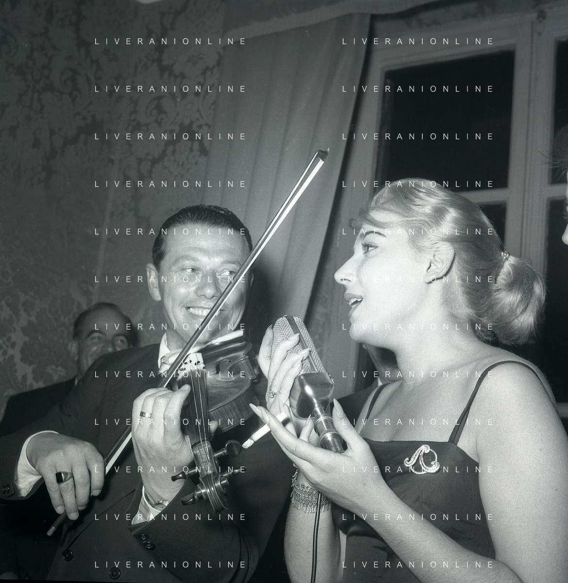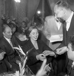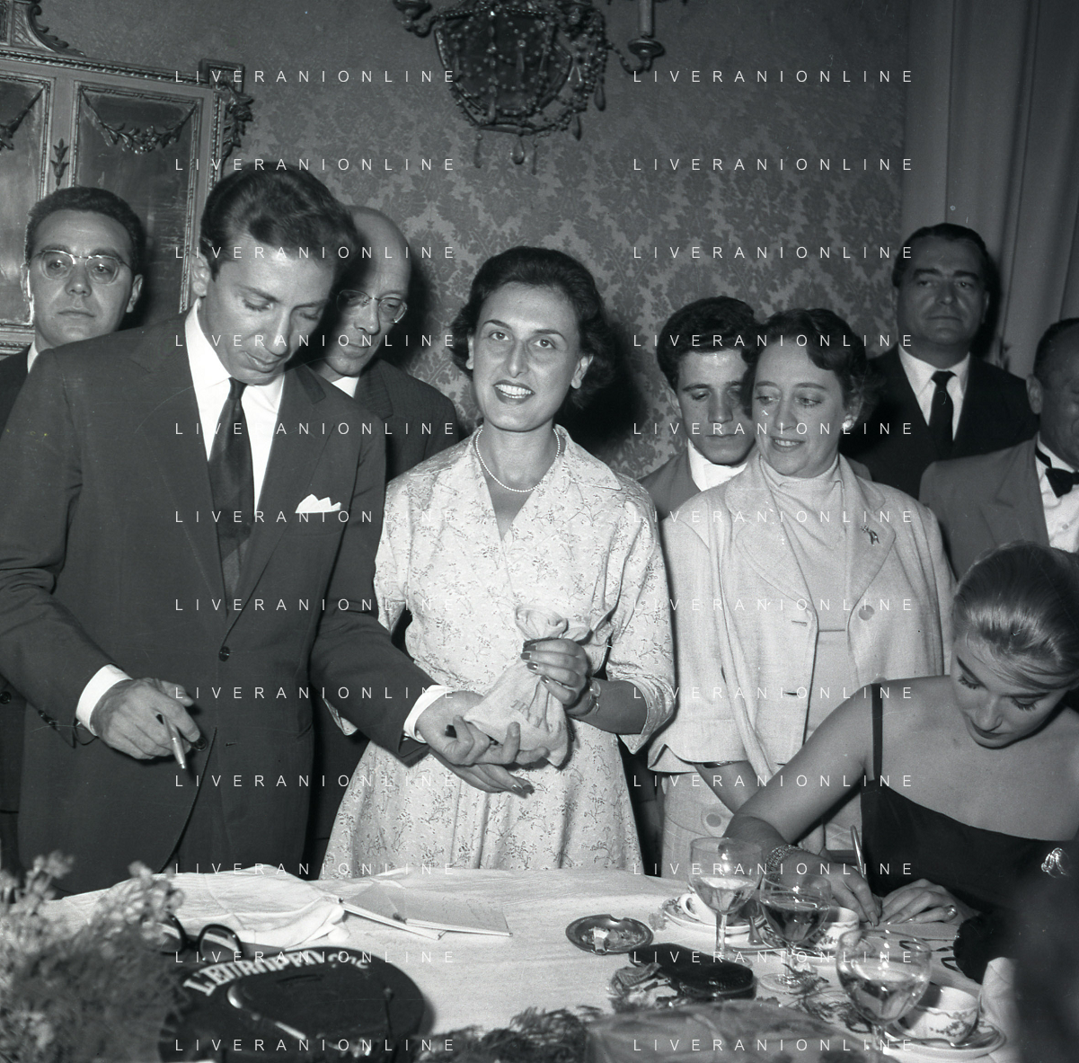 06-10-1956 CASTEL GANDOLFO FESTA DELLA TRASMISSIONE TELEVISIVA “LASCIA O RADDOPPIA“ NELLA FOTO EDY CAMPAGNOLI E MIKE BONGIORNO FOTO SANDRO VESPASIANI-AG ALDO LIVERANI SAS
