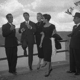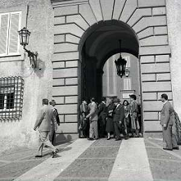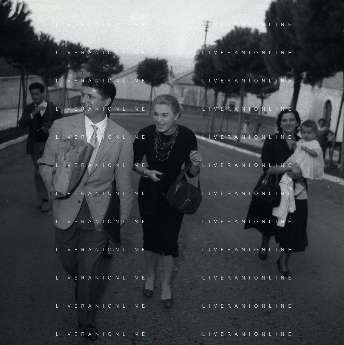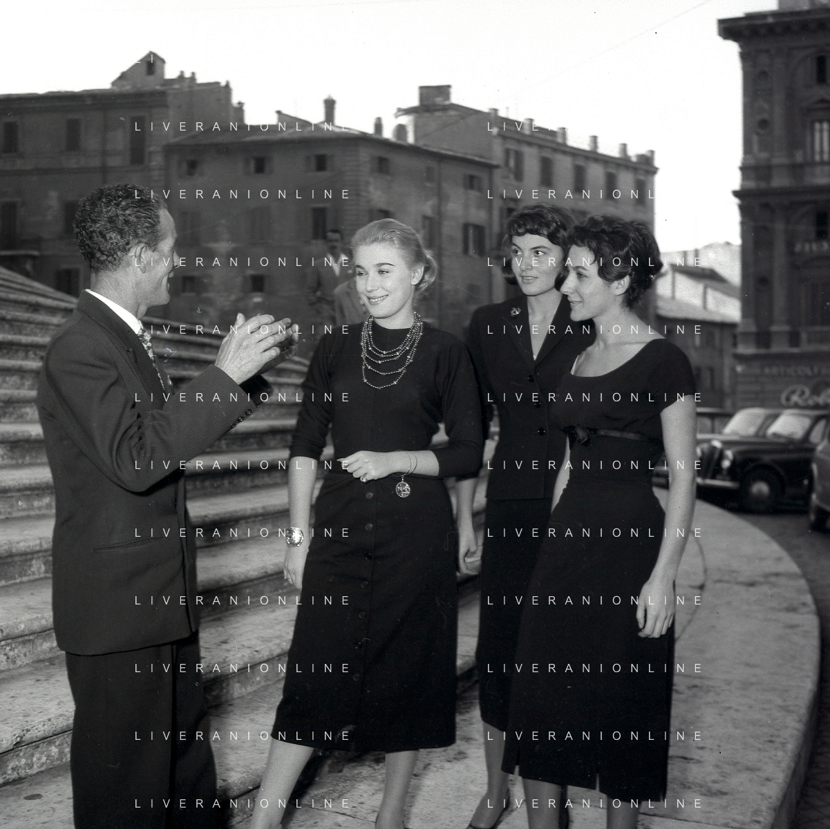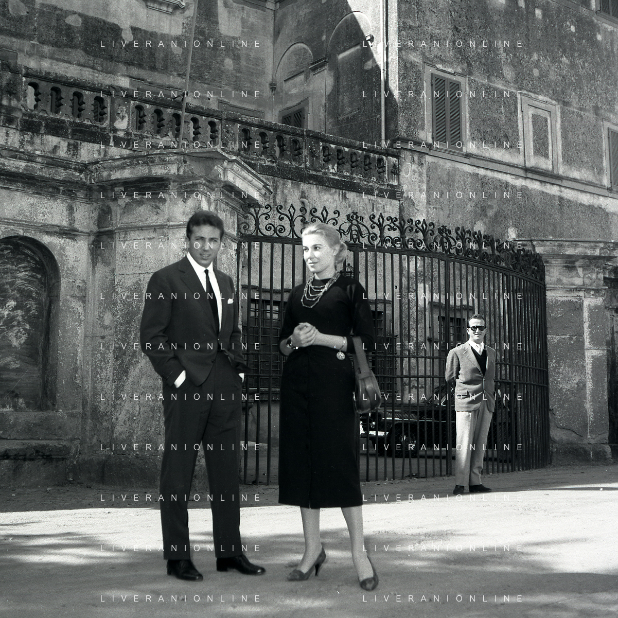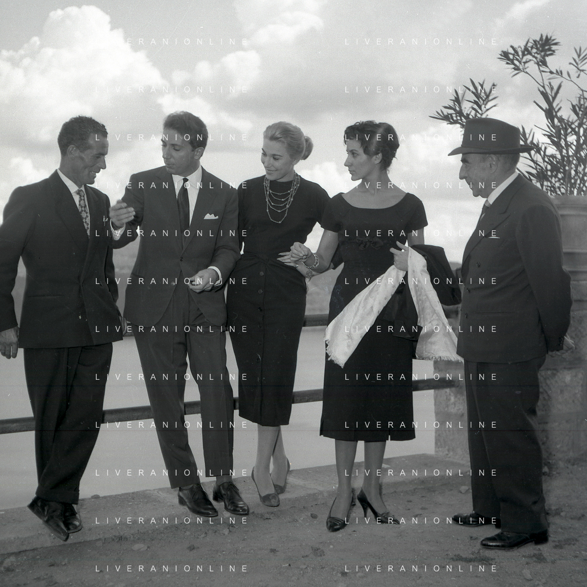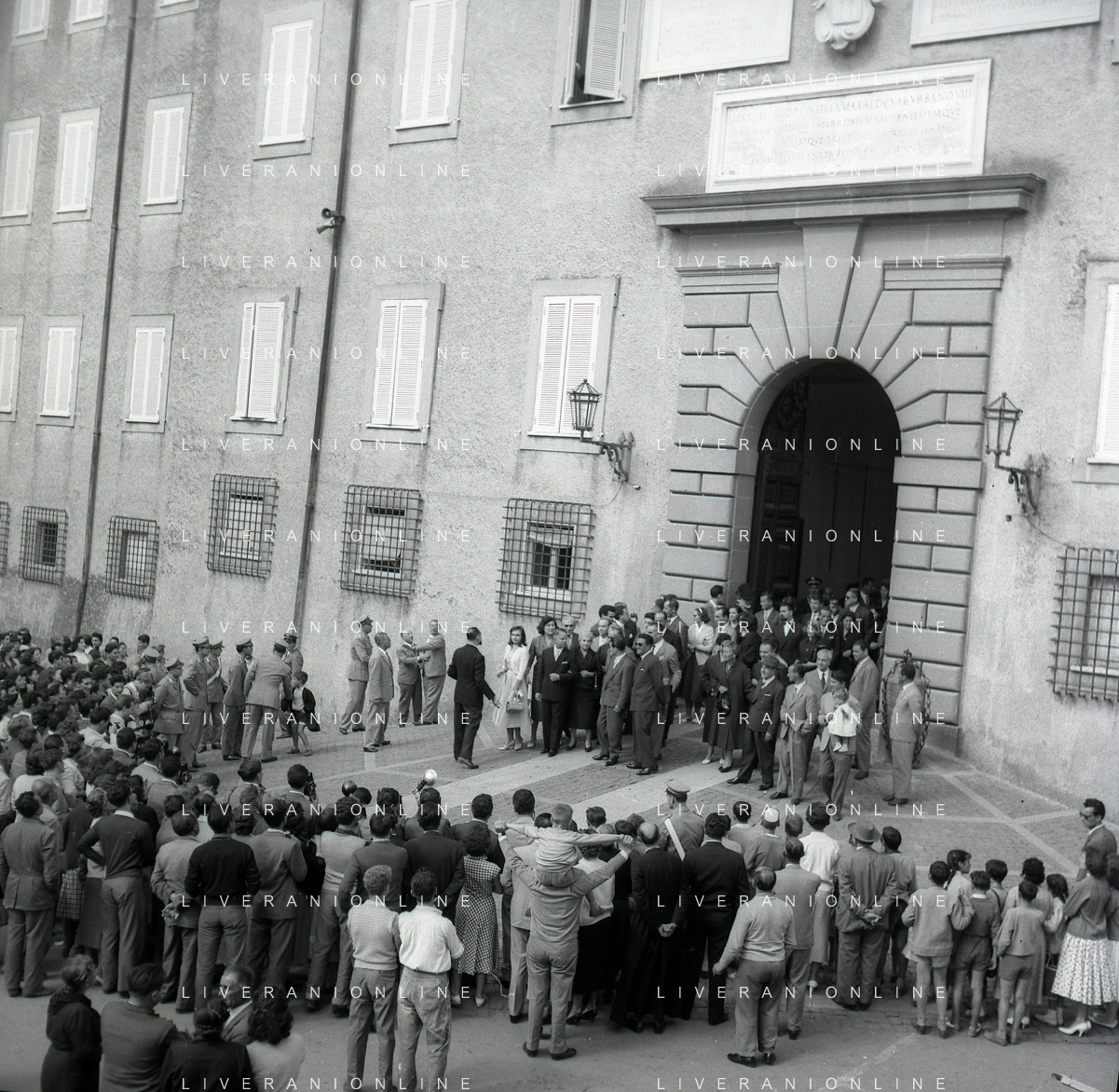 06-10-1956 CASTEL GANDOLFO FESTA DELLA TRASMISSIONE TELEVISIVA “LASCIA O RADDOPPIA“ NELLA FOTO I CONCORRENTI DI LASCIA O RADDOPPIA DAVANTI A CASTEL GANDOLFO RESIDENZA DEL PAPA FOTO SANDRO VESPASIANI-AG ALDO LIVERANI SAS