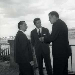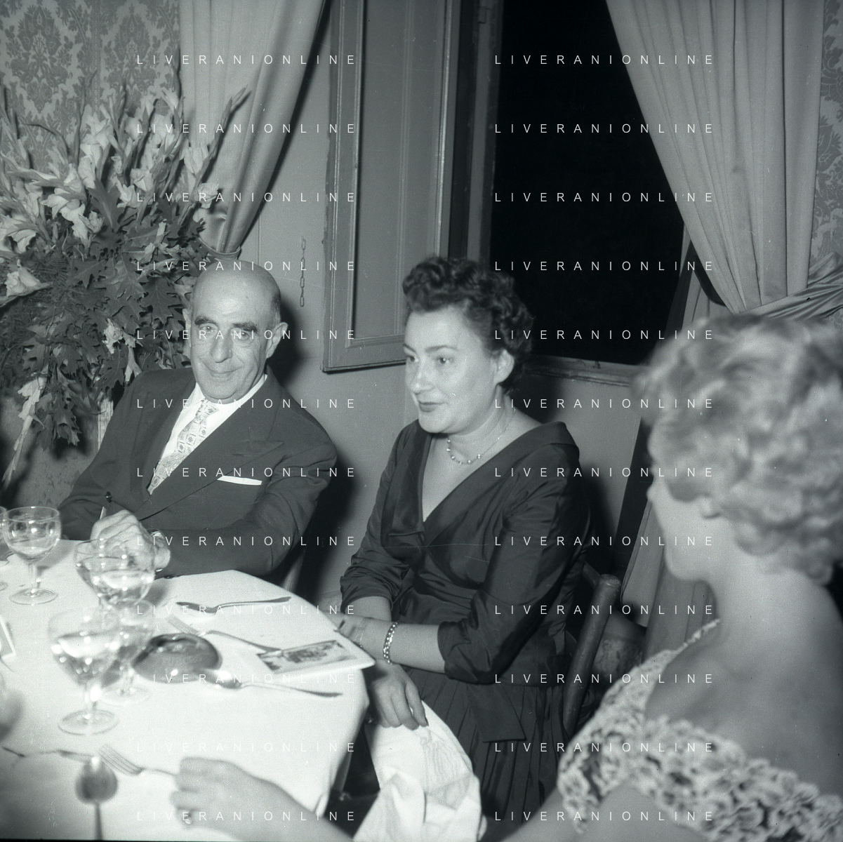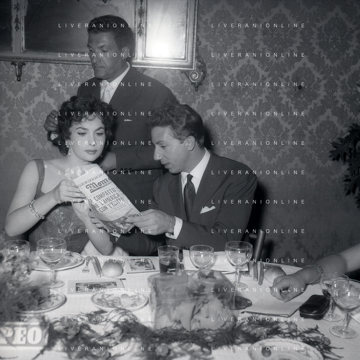 06-10-1956 CASTEL GANDOLFO FESTA DELLA TRASMISSIONE TELEVISIVA “LASCIA O RADDOPPIA“ NELLA FOTO ANGELO RIZZOLI GINA LOLLOBRIGIDA E MIKE BONGIORNO FOTO SANDRO VESPASIANI-AG ALDO LIVERANI SAS