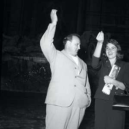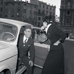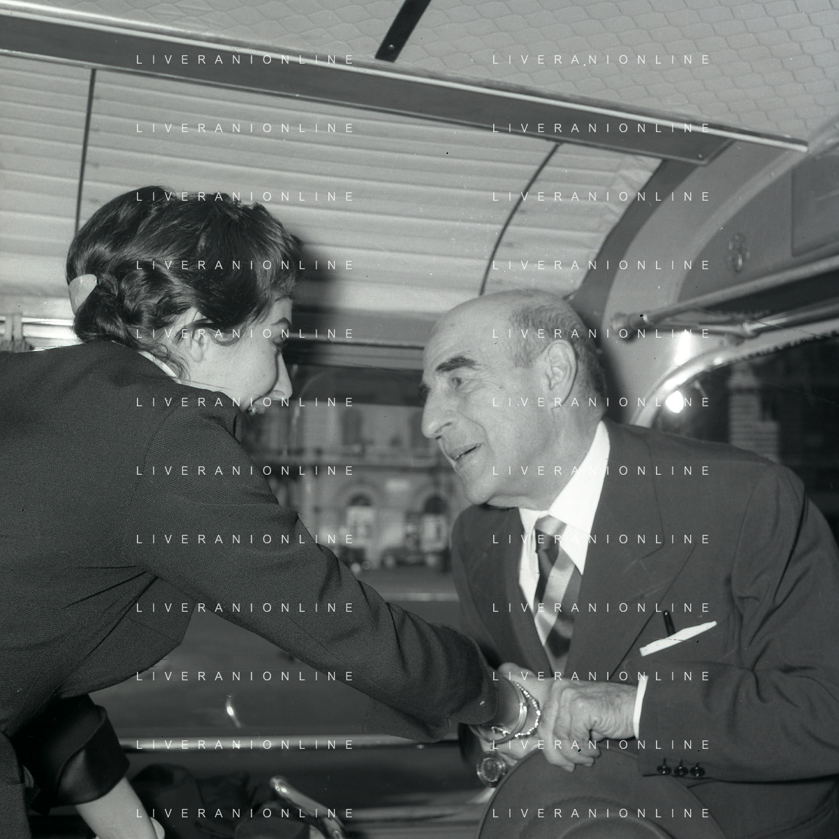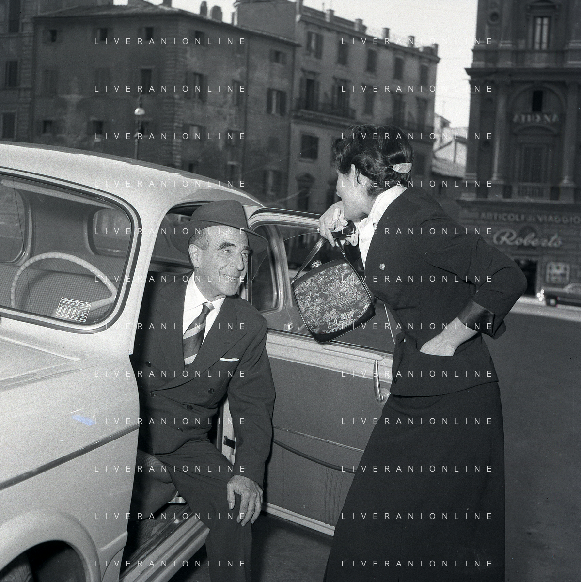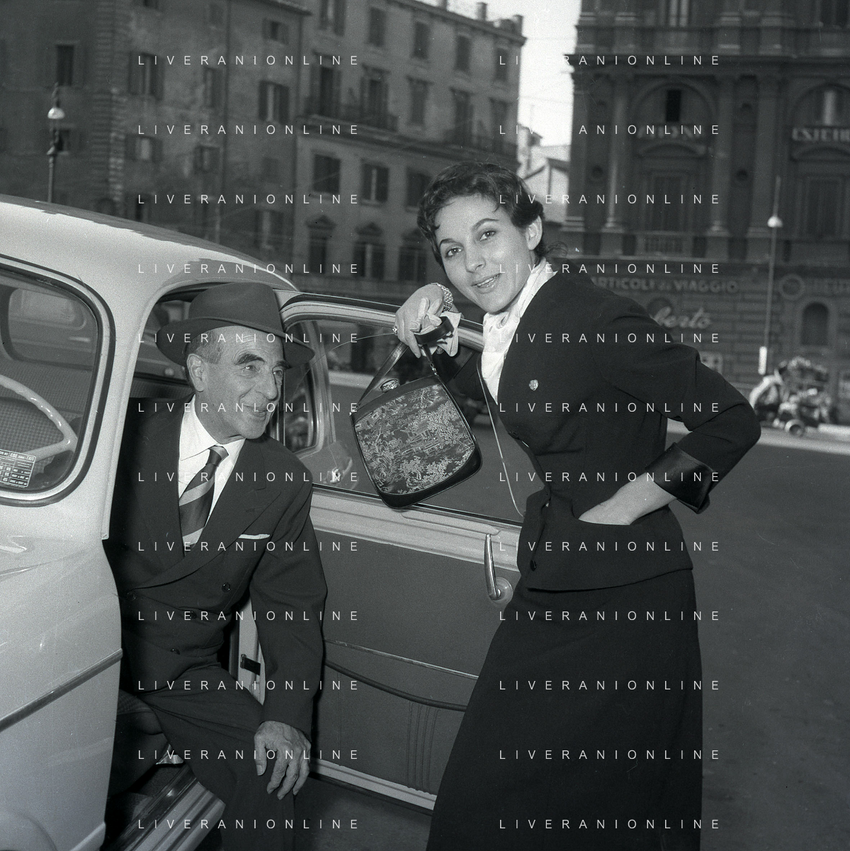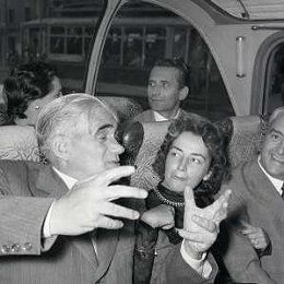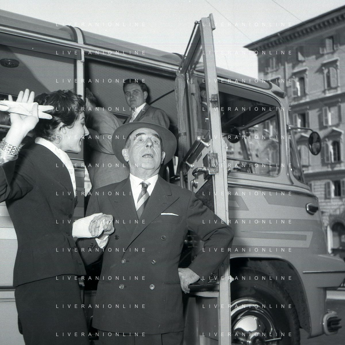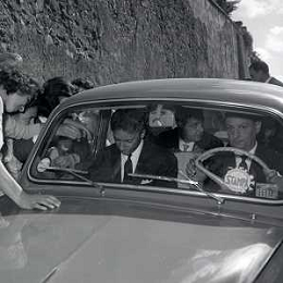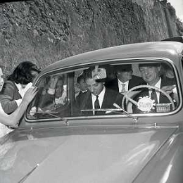06-10-1956 CASTEL GANDOLFO FESTA DELLA TRASMISSIONE TELEVISIVA “LASCIA O RADDOPPIA“ NELLA FOTO L'ARRIVO DI MIKE BONGIORNO FOTO SANDRO VESPASIANI-AG ALDO LIVERANI SAS