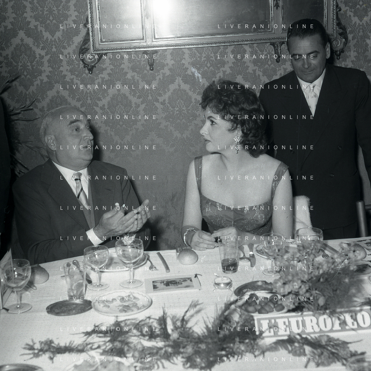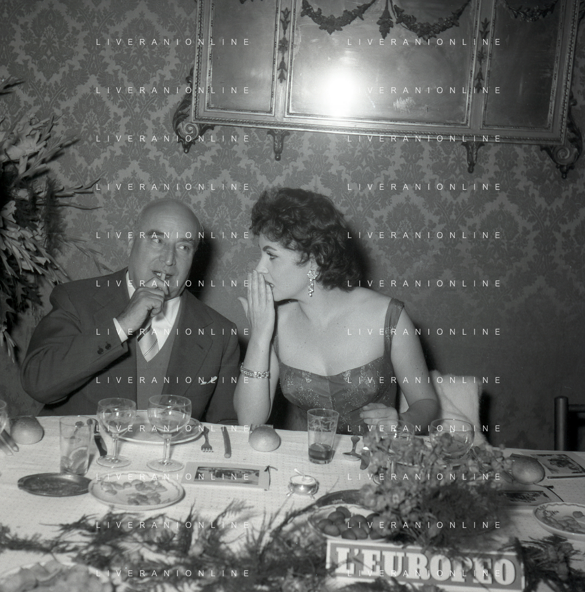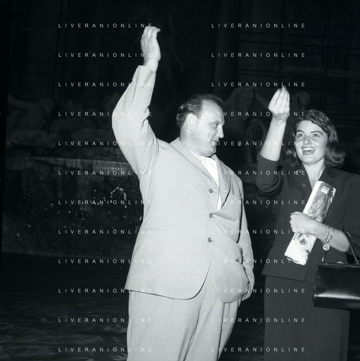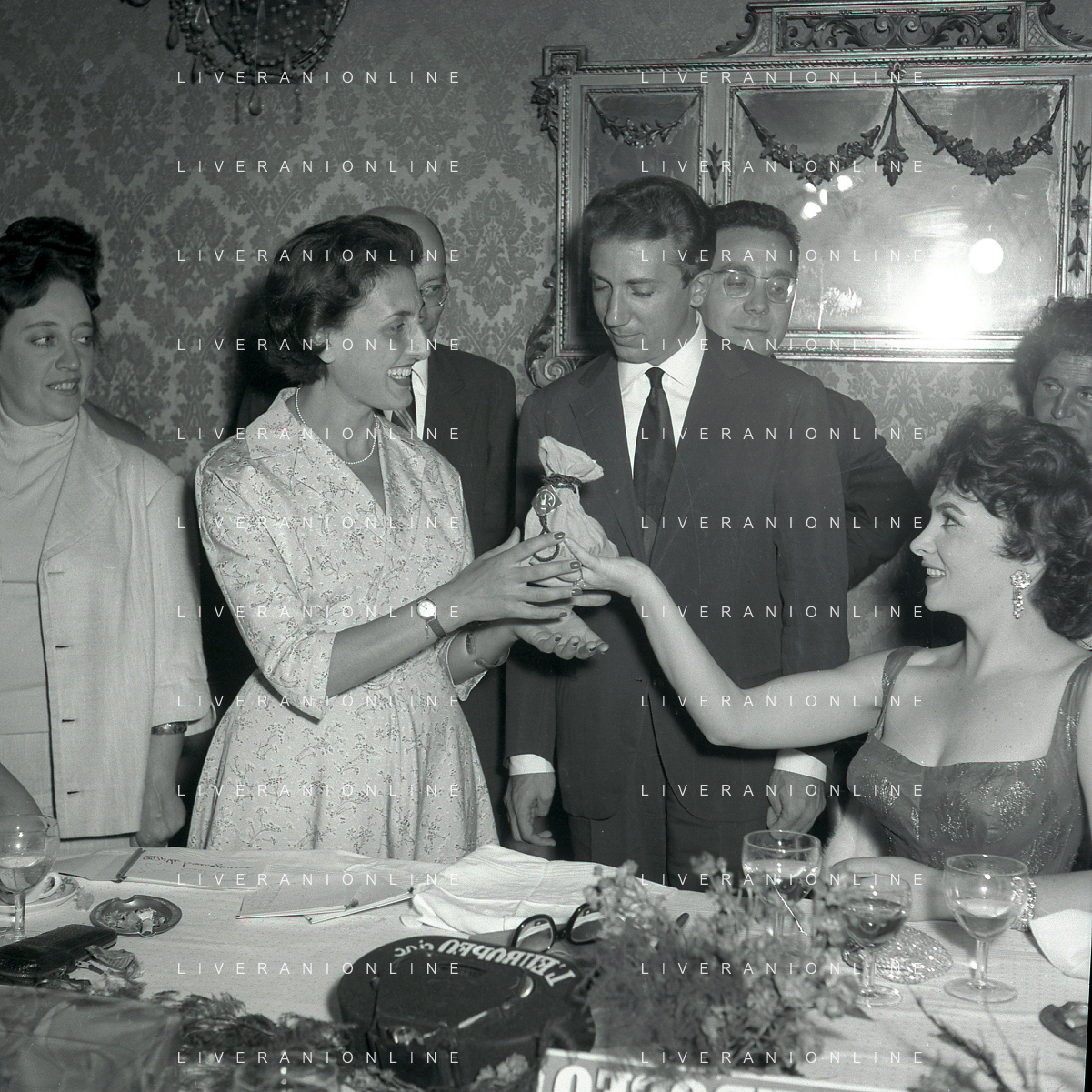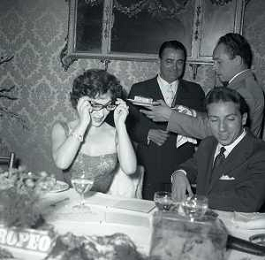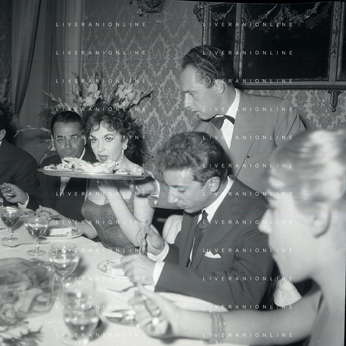 06-10-1956 CASTEL GANDOLFO FESTA DELLA TRASMISSIONE TELEVISIVA “LASCIA O RADDOPPIA“ NELLA FOTO GINA LOLLOBRIGIDA E ANGELO RIZZOLI FOTO SANDRO VESPASIANI-AG ALDO LIVERANI SAS