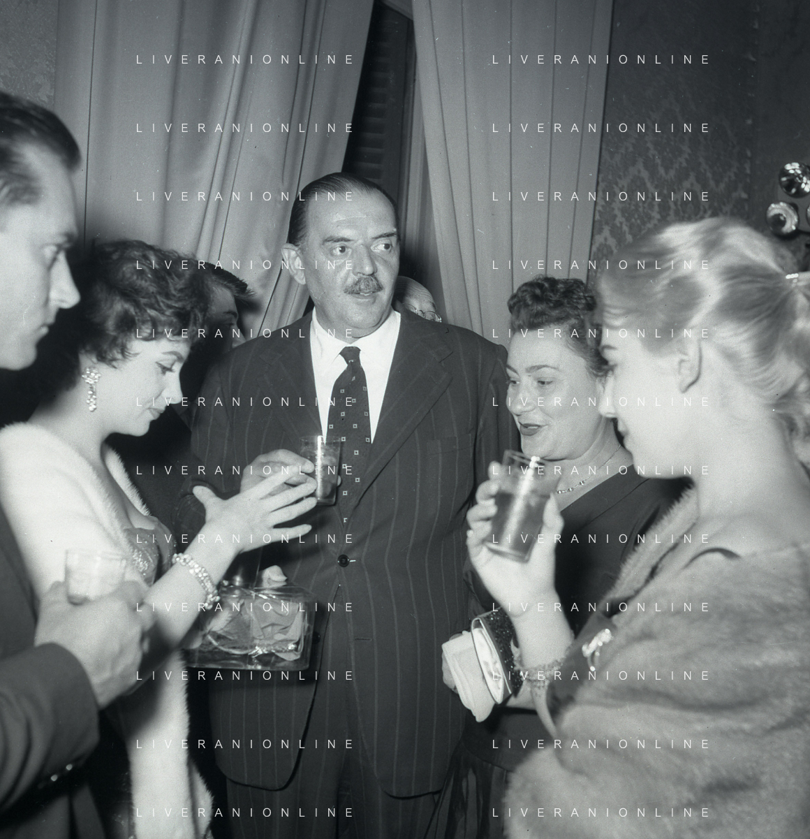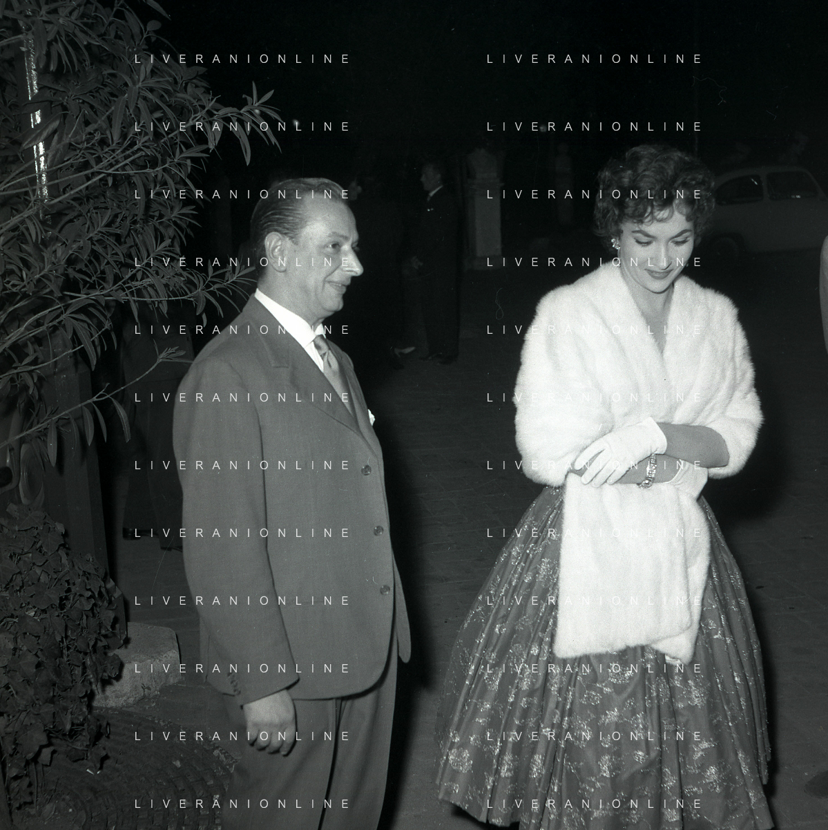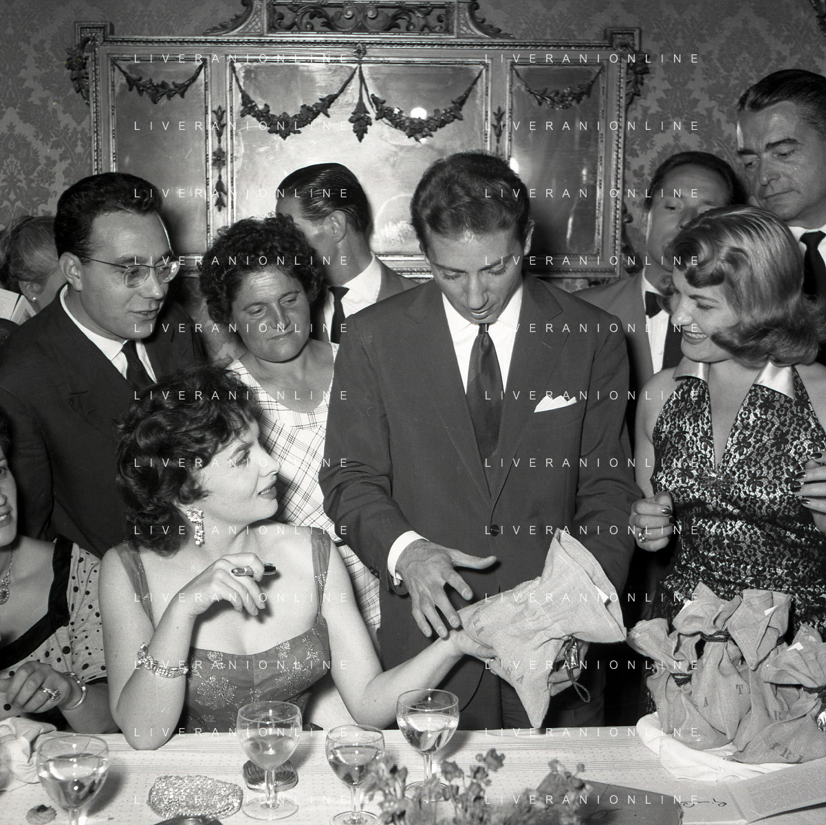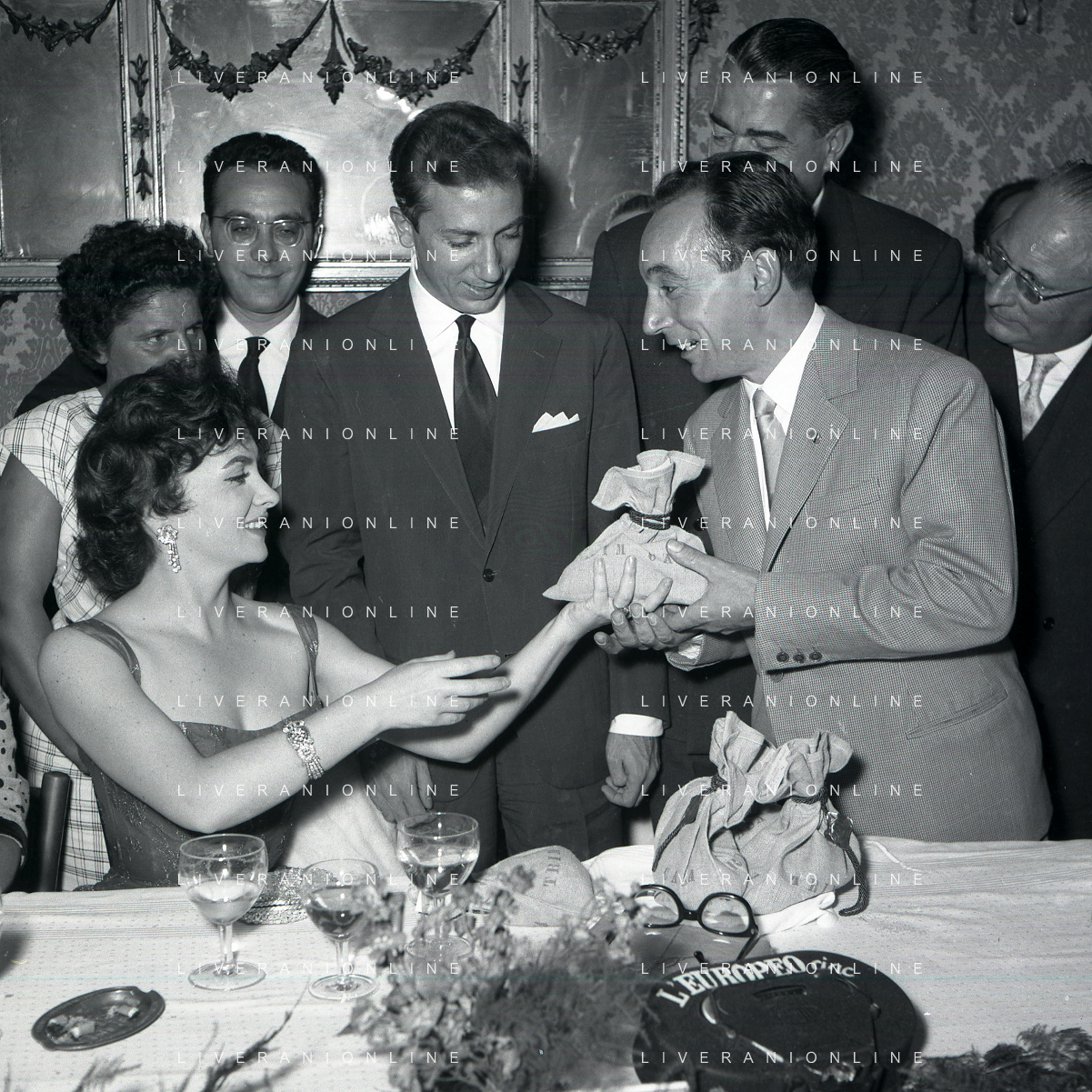 06-10-1956 CASTEL GANDOLFO FESTA DELLA TRASMISSIONE TELEVISIVA “LASCIA O RADDOPPIA“ NELLA FOTO GINA LOLLOBRIGIDA E ANGELO RIZZOLI FOTO SANDRO VESPASIANI-AG ALDO LIVERANI SAS