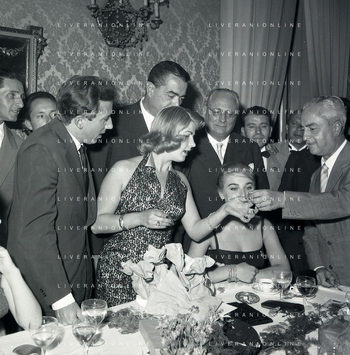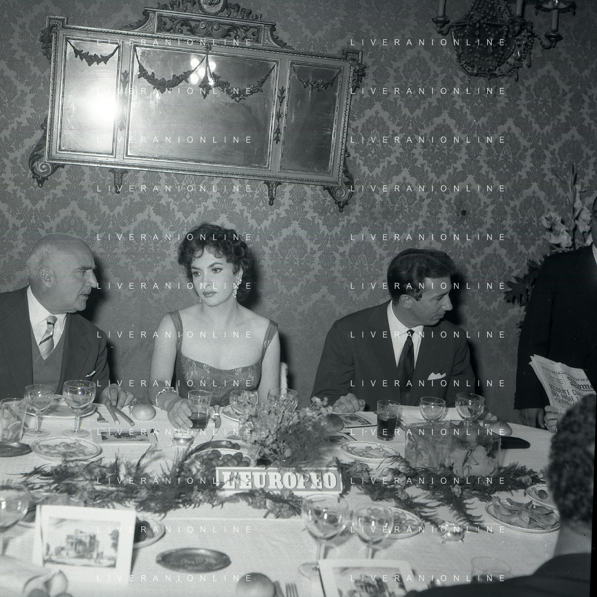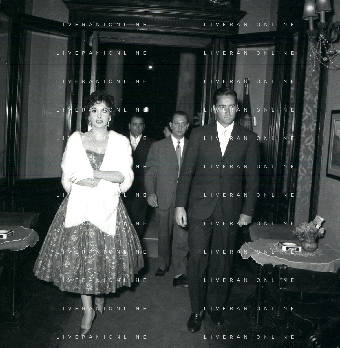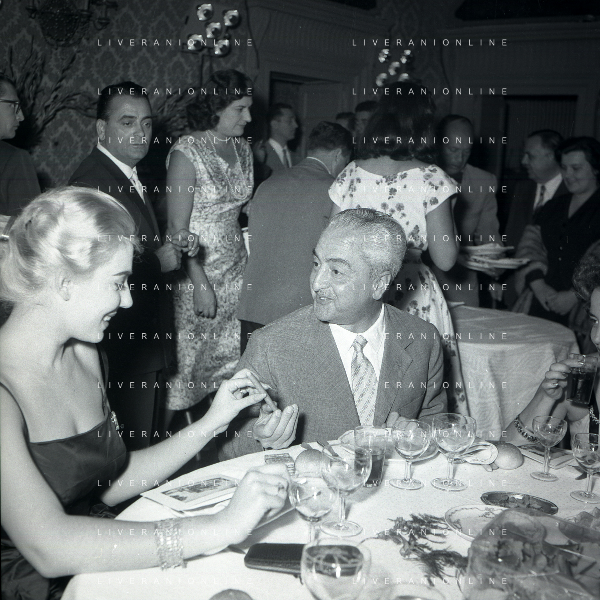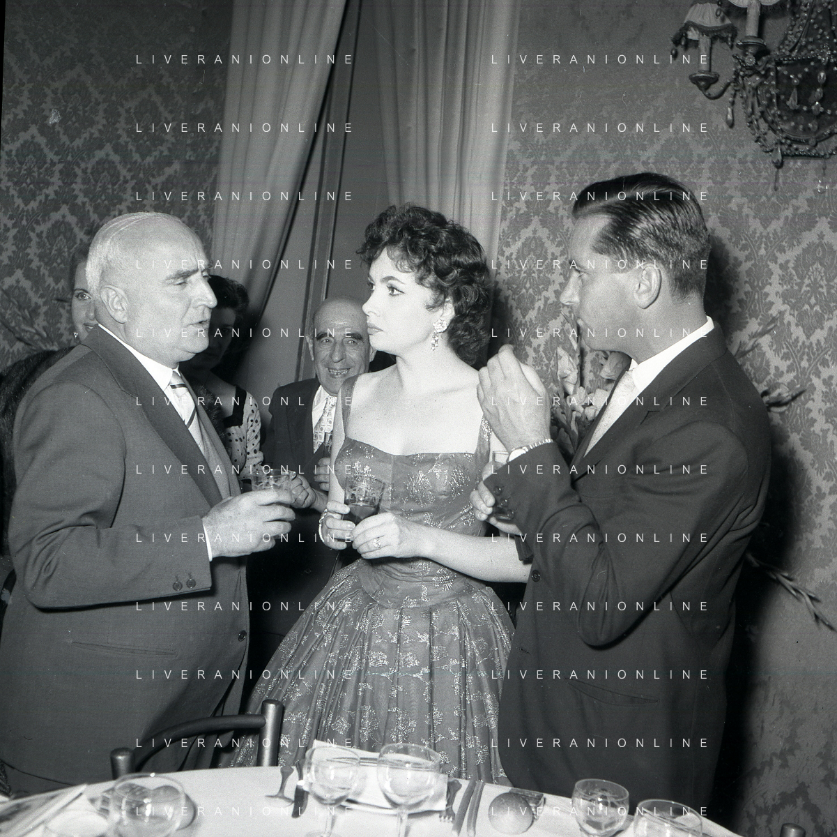 06-10-1956 CASTEL GANDOLFO FESTA DELLA TRASMISSIONE TELEVISIVA “LASCIA O RADDOPPIA“ NELLA FOTO GINA LOLLOBRIGIDA E ANGELO RIZZOLI FOTO SANDRO VESPASIANI-AG ALDO LIVERANI SAS