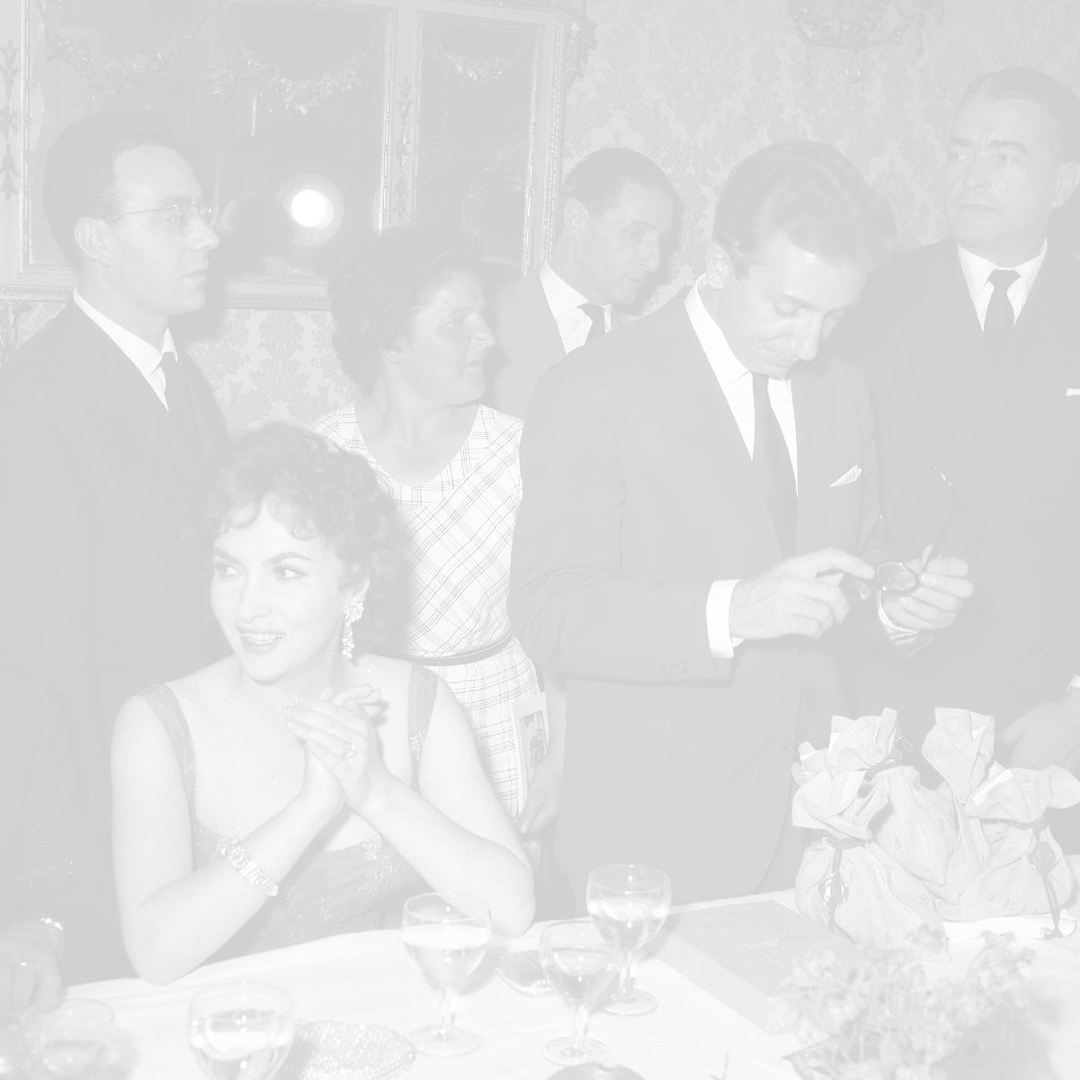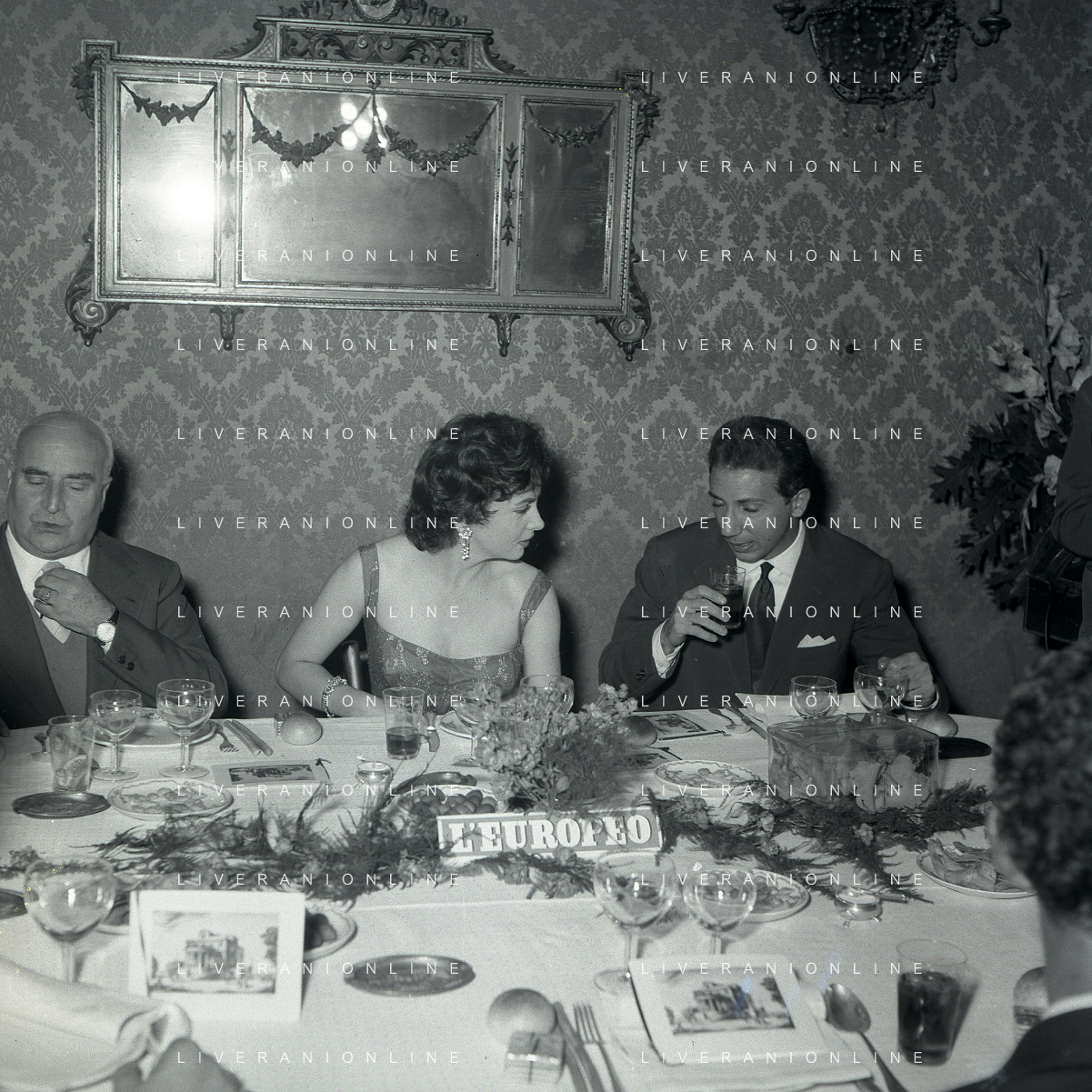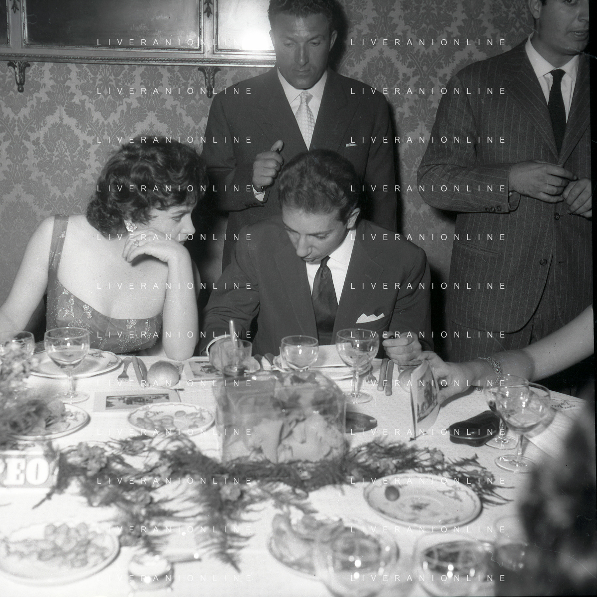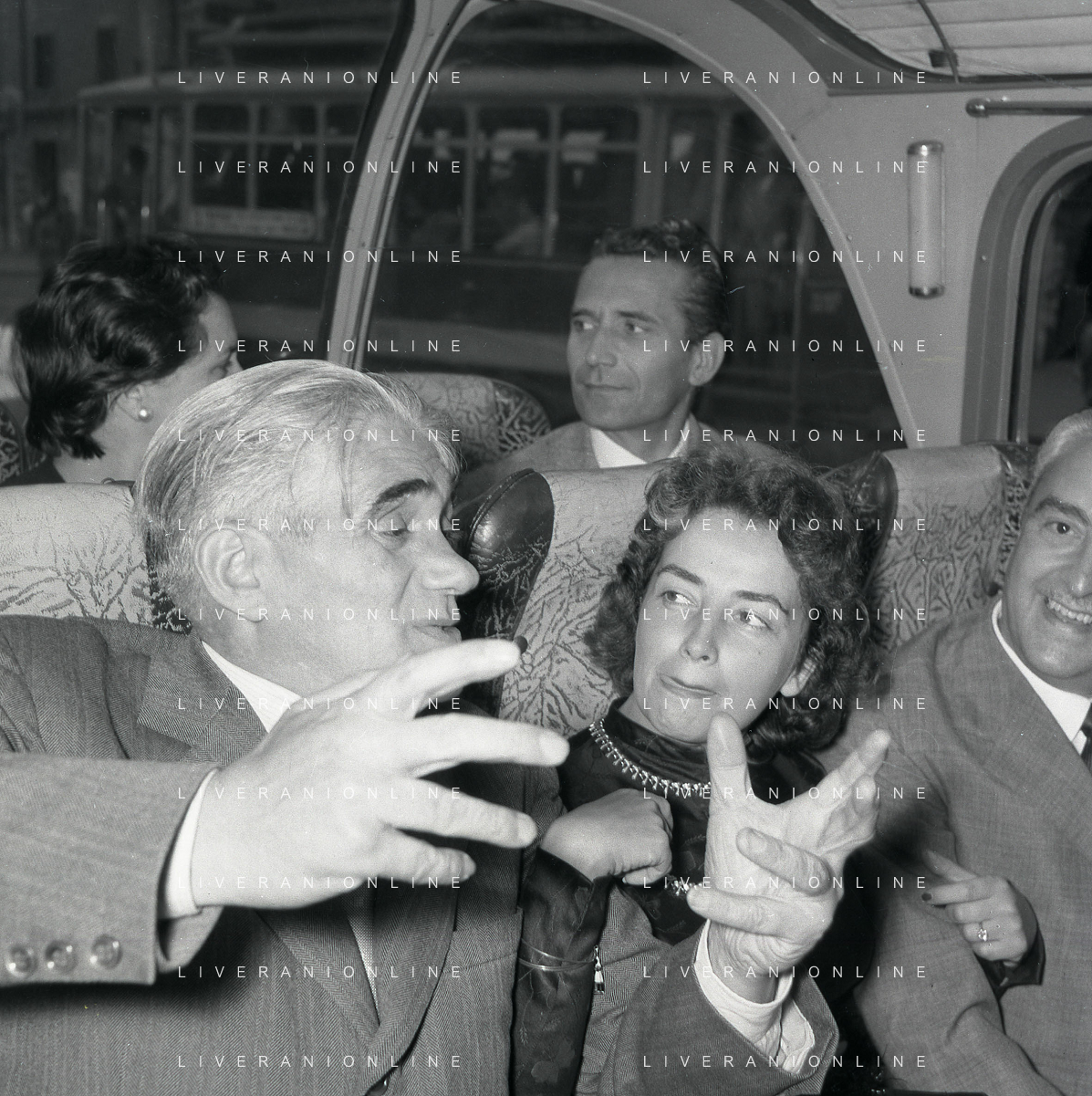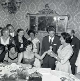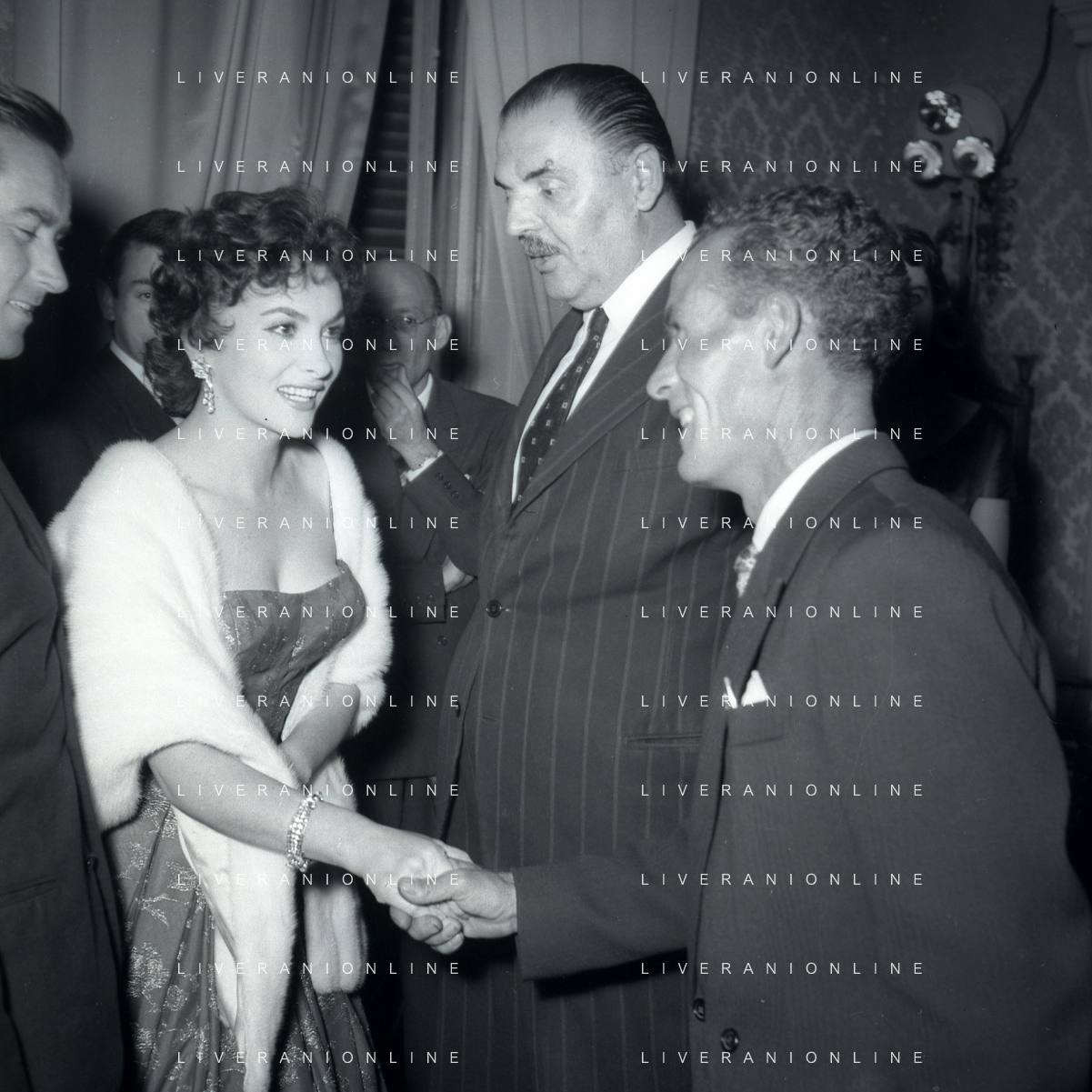 06-10-1956 CASTEL GANDOLFO FESTA DELLA TRASMISSIONE TELEVISIVA “LASCIA O RADDOPPIA“ NELLA FOTO GINA LOLLOBRIGIDA E ANGELO RIZZOLI FOTO SANDRO VESPASIANI-AG ALDO LIVERANI SAS