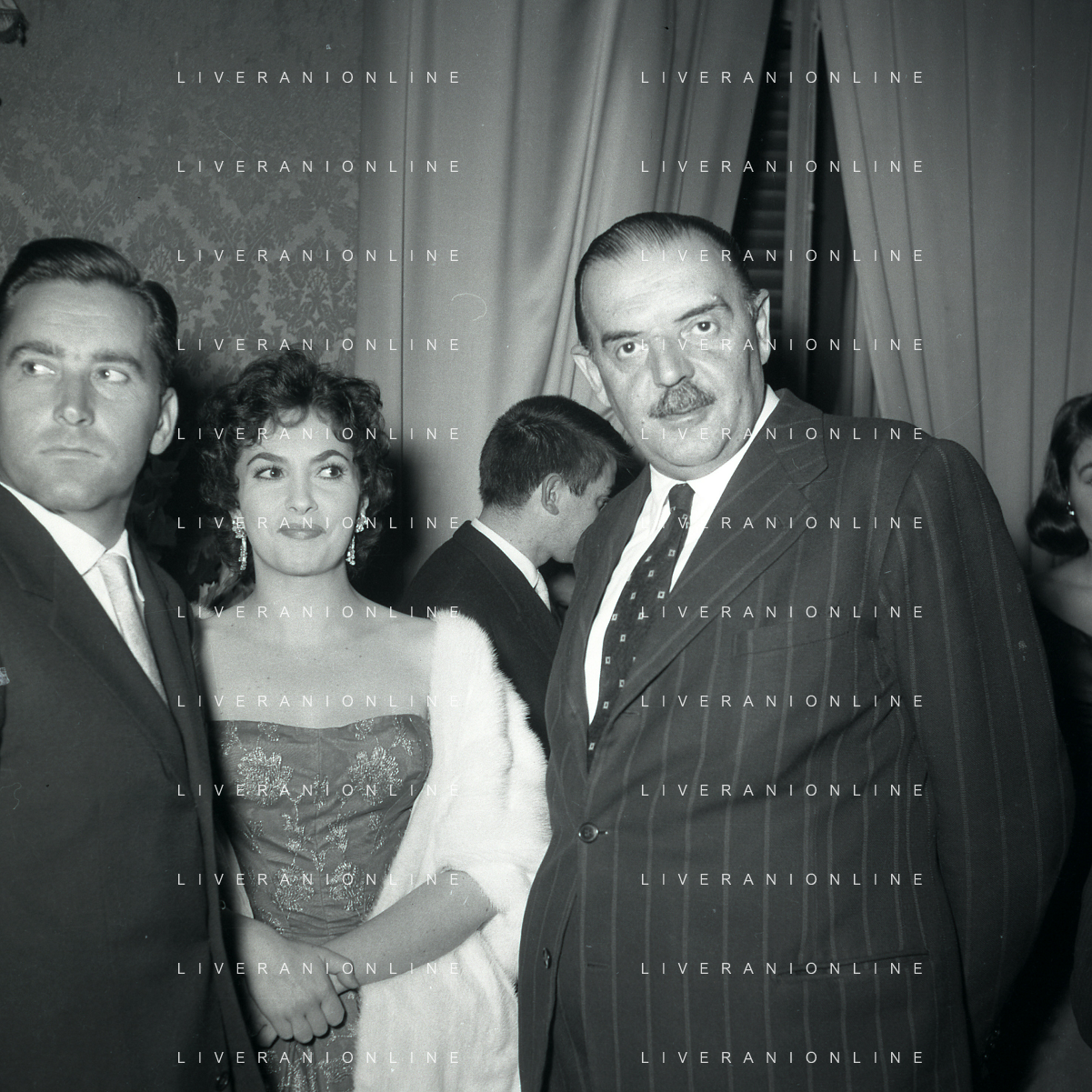 06-10-1956 CASTEL GANDOLFO FESTA DELLA TRASMISSIONE TELEVISIVA “LASCIA O RADDOPPIA“ NELLA FOTO ANGELO RIZZOLI-GINA LOLLOBRIGIDA E MIKE BONGIORNO FOTO SANDRO VESPASIANI-AG ALDO LIVERANI SAS