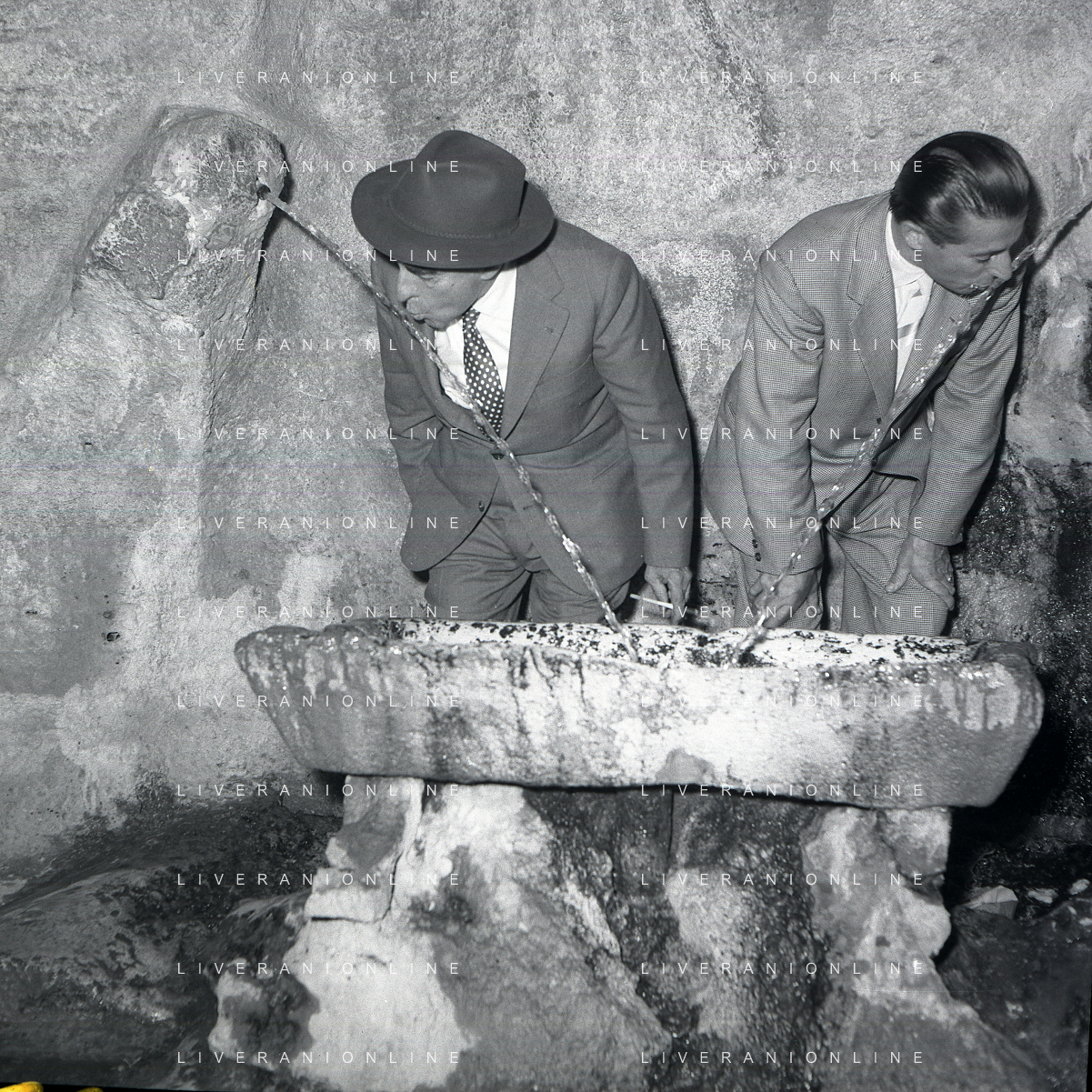 06-10-1956 CASTEL GANDOLFO FESTA DELLA TRASMISSIONE TELEVISIVA “LASCIA O RADDOPPIA“ NELLA FOTO MIKE BONGIORNO E ANGELO RIZZOLI FOTO SANDRO VESPASIANI-AG ALDO LIVERANI SAS