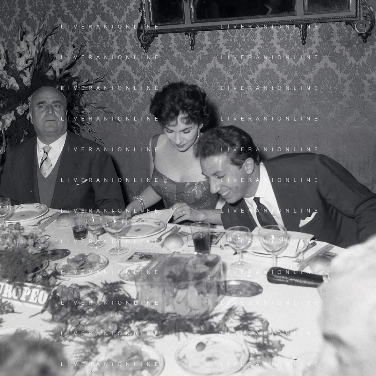 06-10-1956 CASTEL GANDOLFO FESTA DELLA TRASMISSIONE TELEVISIVA “LASCIA O RADDOPPIA“ NELLA FOTO ANGELO RIZZOLI E GINA LOLLOBRIGIDA FOTO SANDRO VESPASIANI-AG ALDO LIVERANI SAS