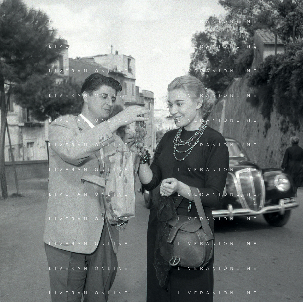 06-10-1956 CASTEL GANDOLFO FESTA DELLA TRASMISSIONE TELEVISIVA “LASCIA O RADDOPPIA“ NELLA FOTO MIKE BONGIORNO E EDY CAMPAGNOLI FOTO SANDRO VESPASIANI-AG ALDO LIVERANI SAS