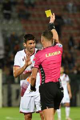 Alessandria 19.09.2022 Stadio Giuseppe Moccagatta ©Alessandro Falzone/Agenzia Aldo Liverani Alessandria-Reggiana 4 Campionato di Serie C Gruppo B Nella foto : L'arbitro Giuseppe Collu estrae il cartellino giallo per l'ammonizione di Daniele Sciaudone ©Falzone/AGENZIA ALDO LIVERANI SAS