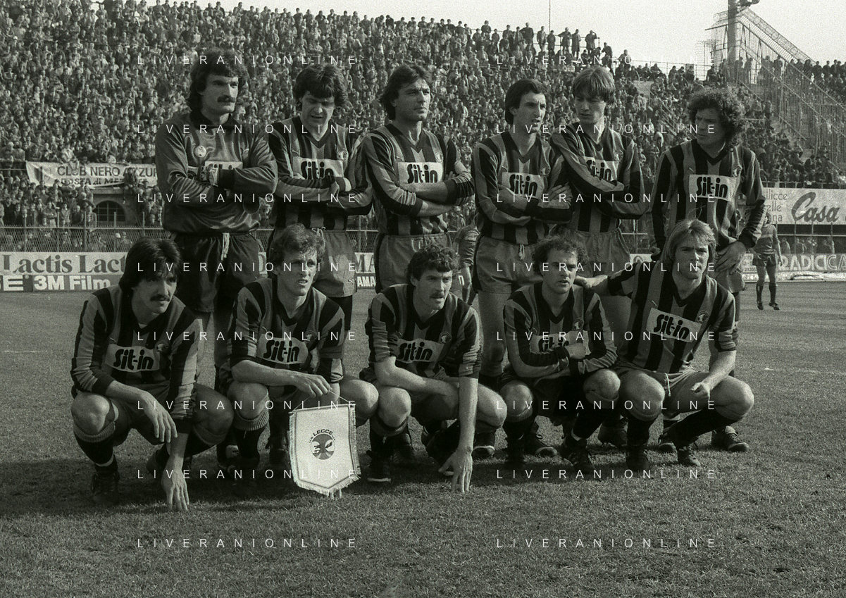04-03-1984 BERGAMO CAMPIONATO DI CALCIO SERIE B ATALANTA-LECCE 1-1 NELLA FOTO FORMAZIONE ATALANTA CALCIO 1983-1984 DA SIN IN PIEDI MIRCO BENEVELLI-ROBERTO SOLDA'-CARMINE GENTILE-MARINO MAGRIN-MARCO PACIONE-MAURIZIO CODOGNO SED DA SIN ENRICO VELLA-EUGENIO PERICO-GIORGO MAGNOCAVALLO-SAURO FATTORI E ANDREA AGOSTINELLI AG ALDO LIVERANI SAS