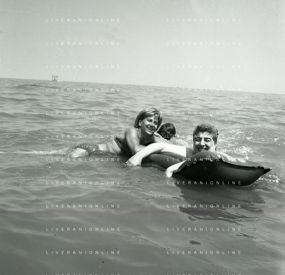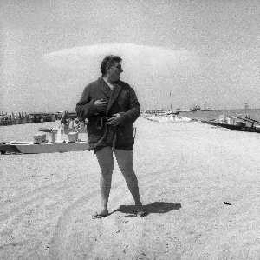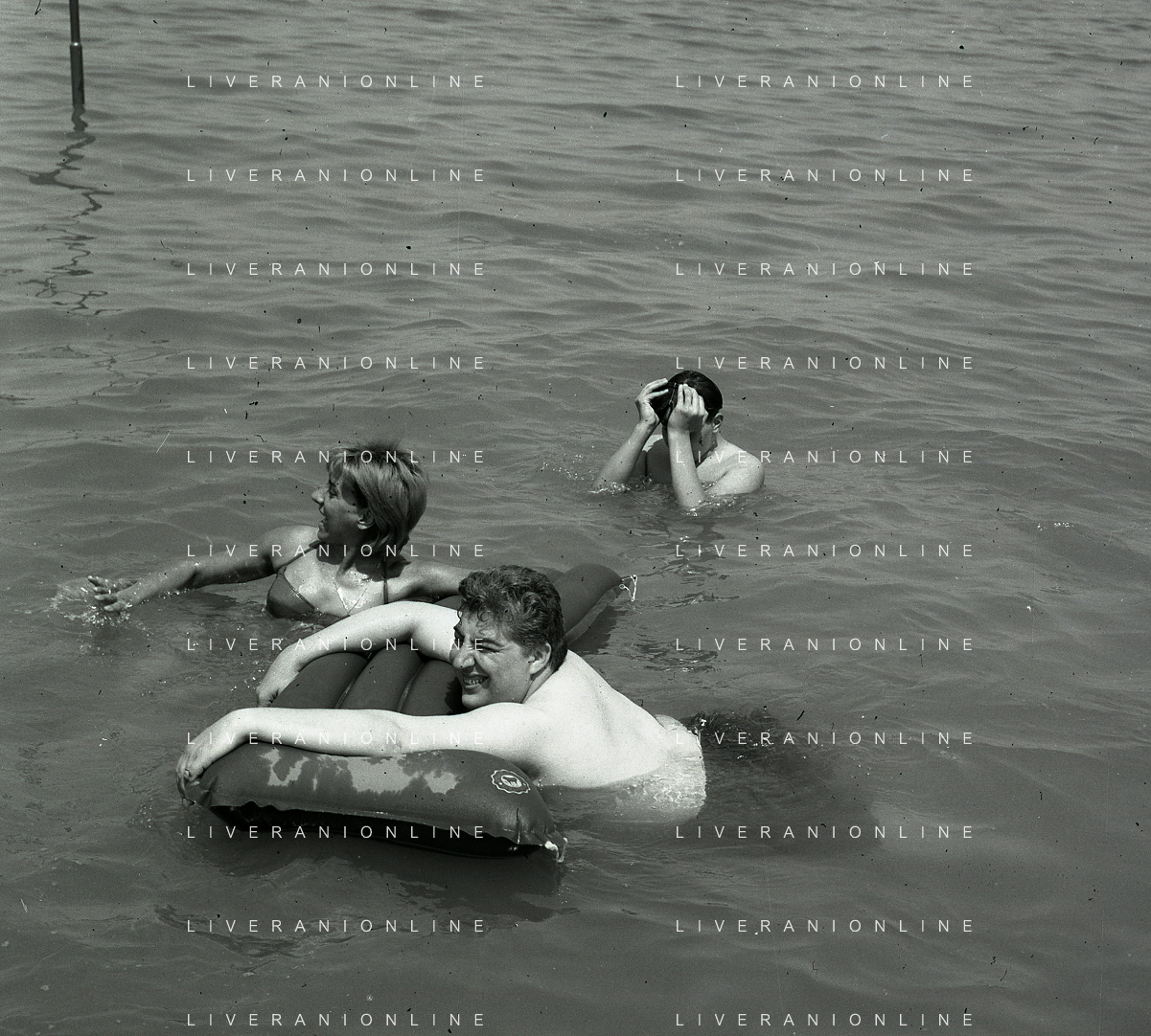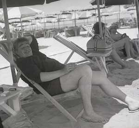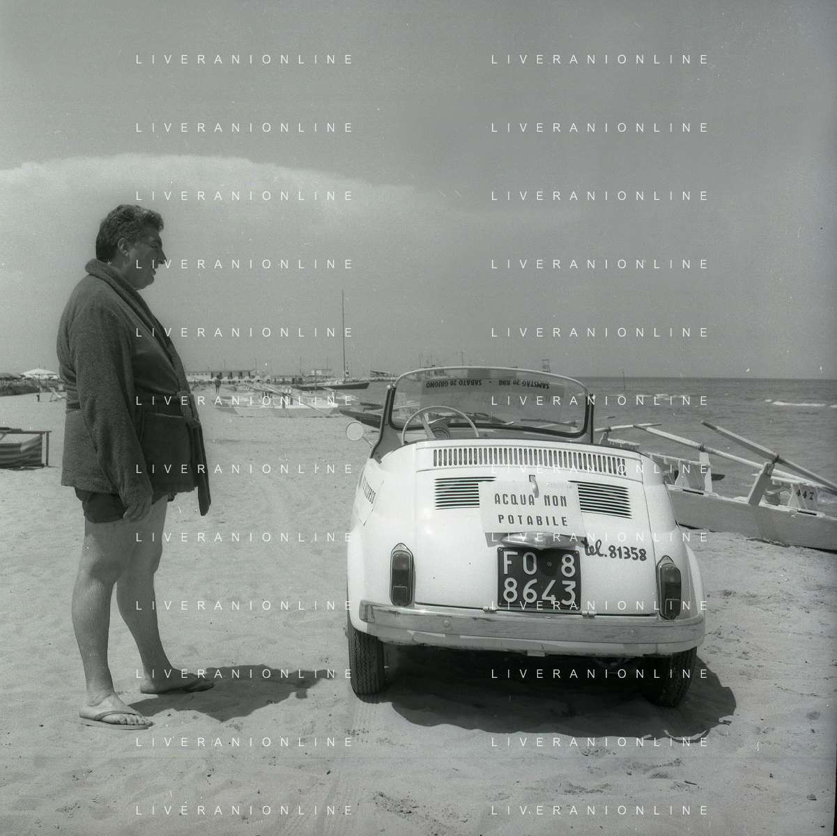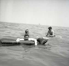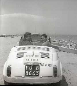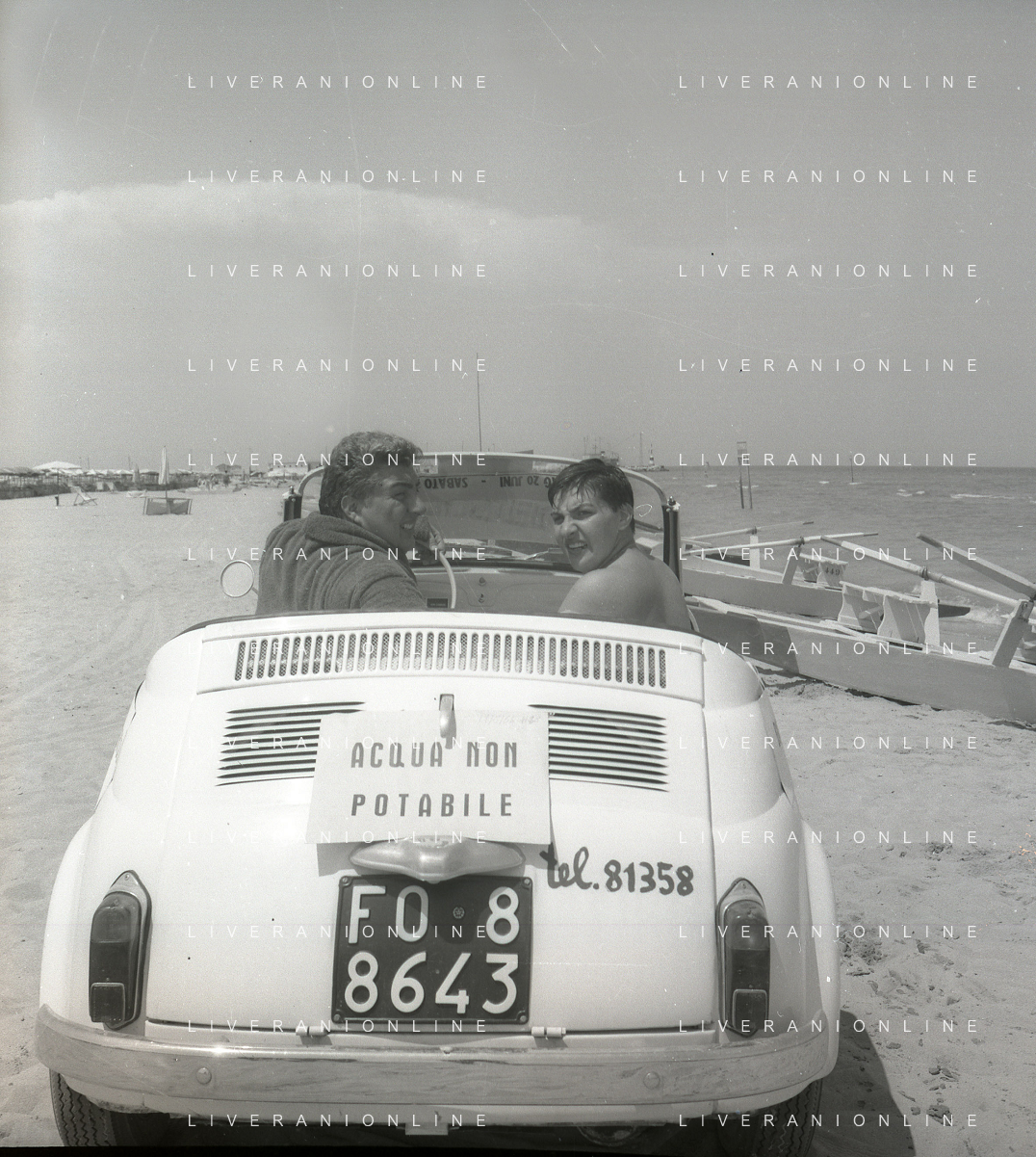 RETROSPETTIVA GINO BRAMIERI ATTORE COMICO CANTANTE NELLA FOTO GINO BRAMIERI A CESENATICO IL GIORNO 20-07-1963 CON IL FIGLIO CESARE E LA MOGLIE MARIA BARBIERI AG ALDO LIVERANI SAS