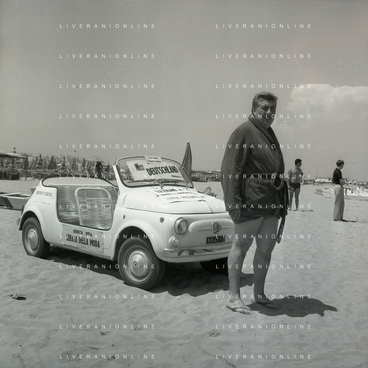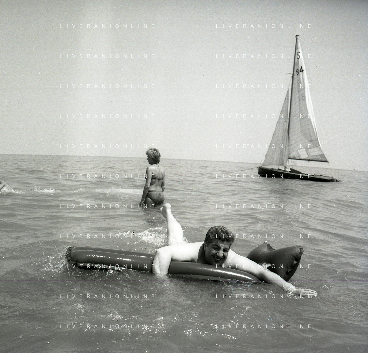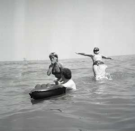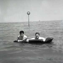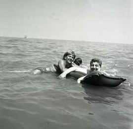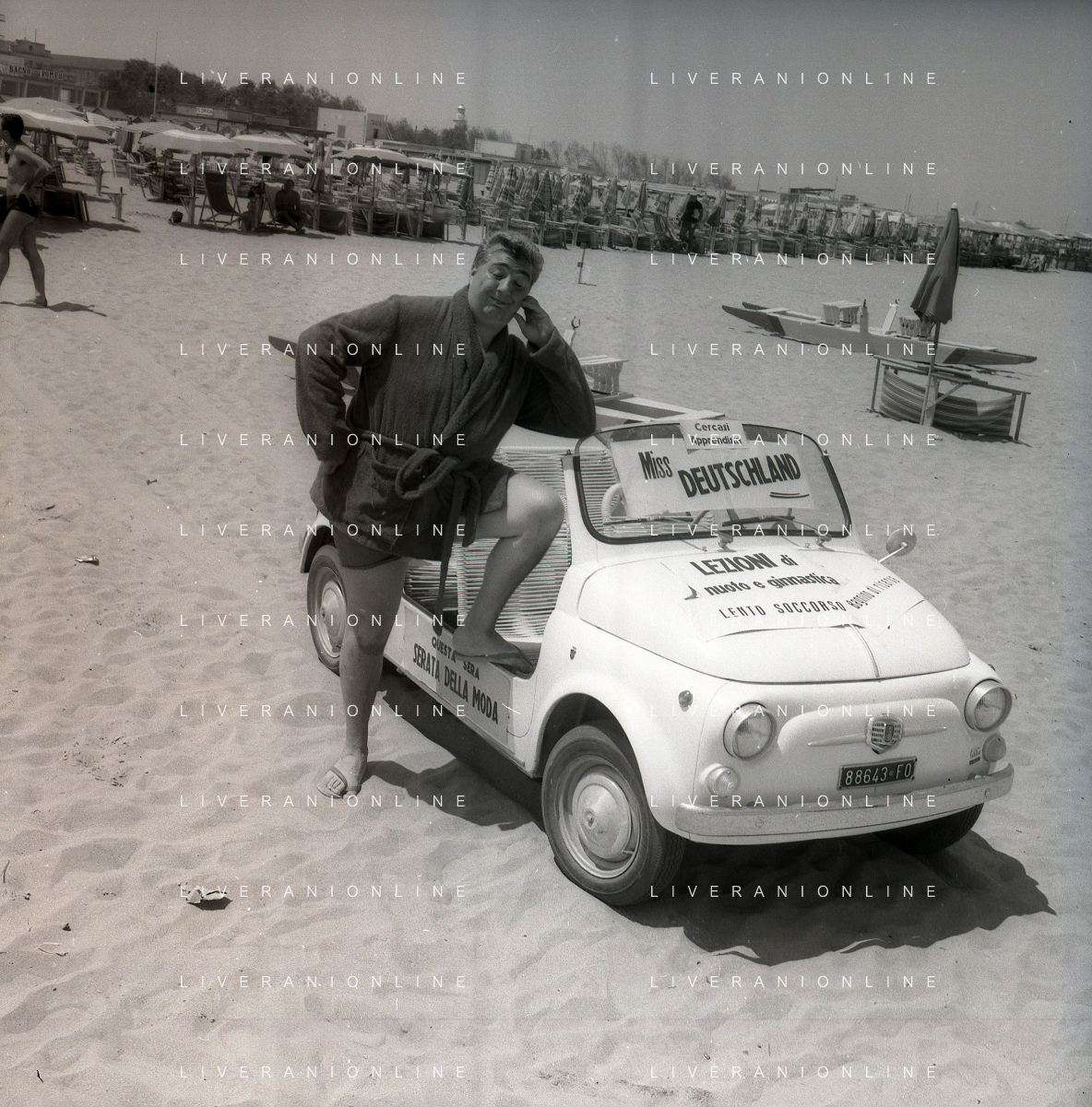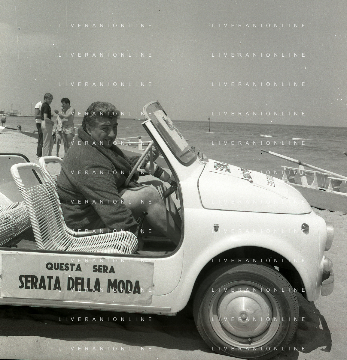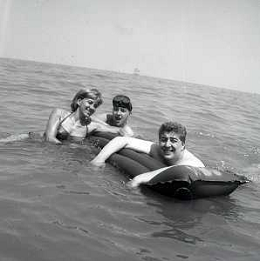 RETROSPETTIVA GINO BRAMIERI ATTORE COMICO CANTANTE NELLA FOTO GINO BRAMIERI A CESENATICO IL GIORNO 20-07-1963 CON IL FIGLIO CESARE E LA MOGLIE MARIA BARBIERI AG ALDO LIVERANI SAS