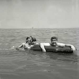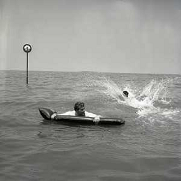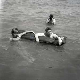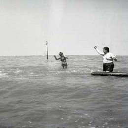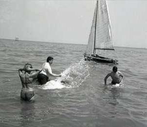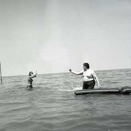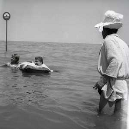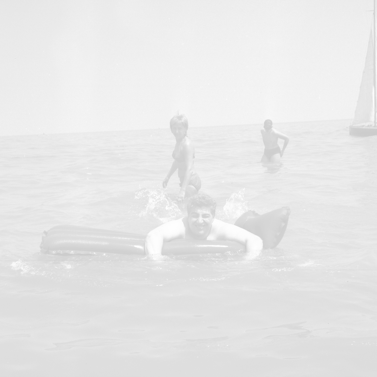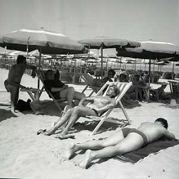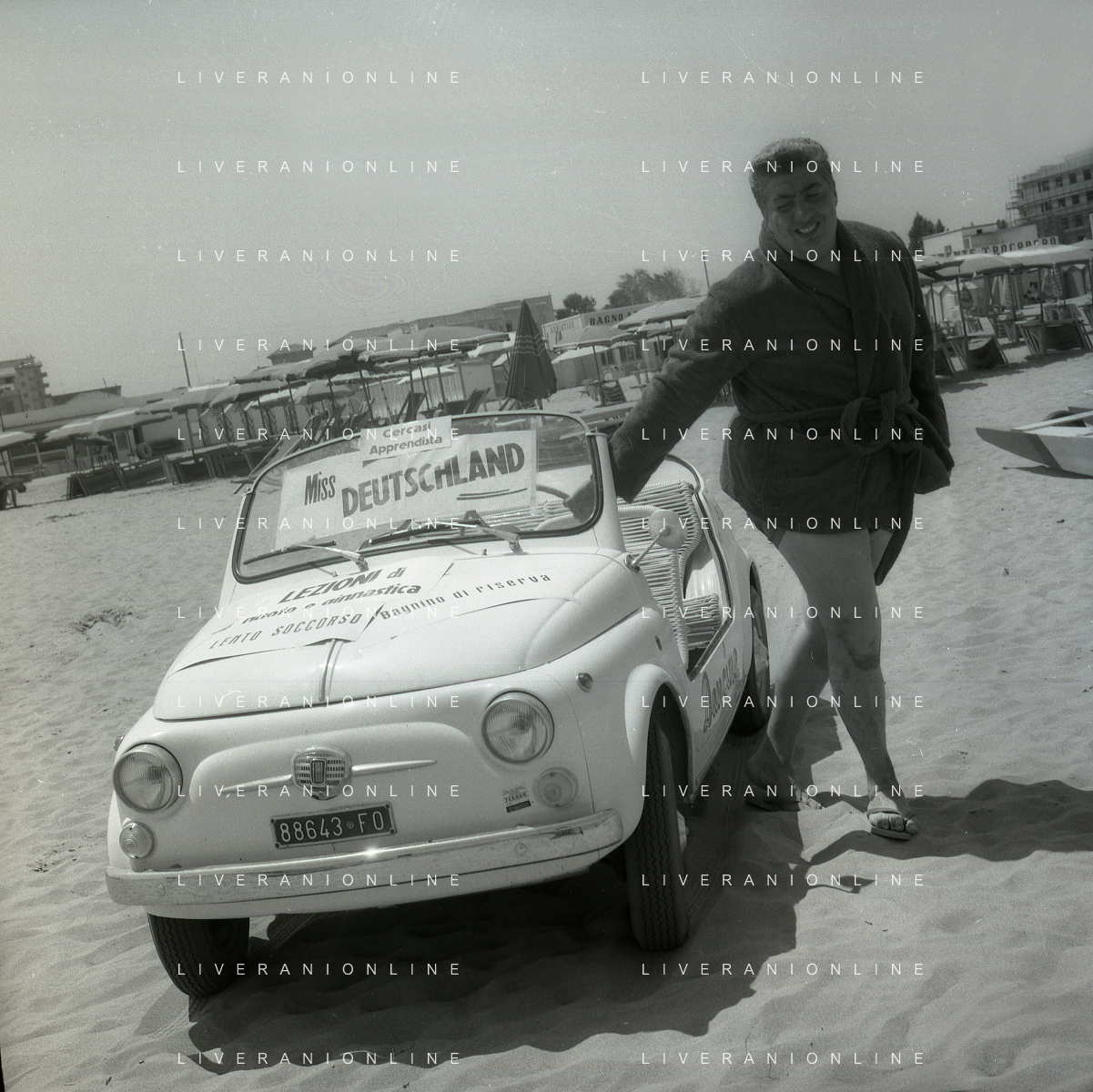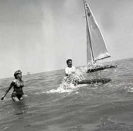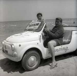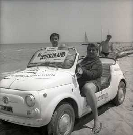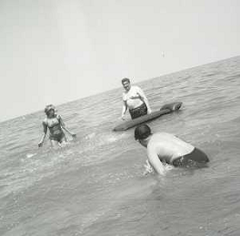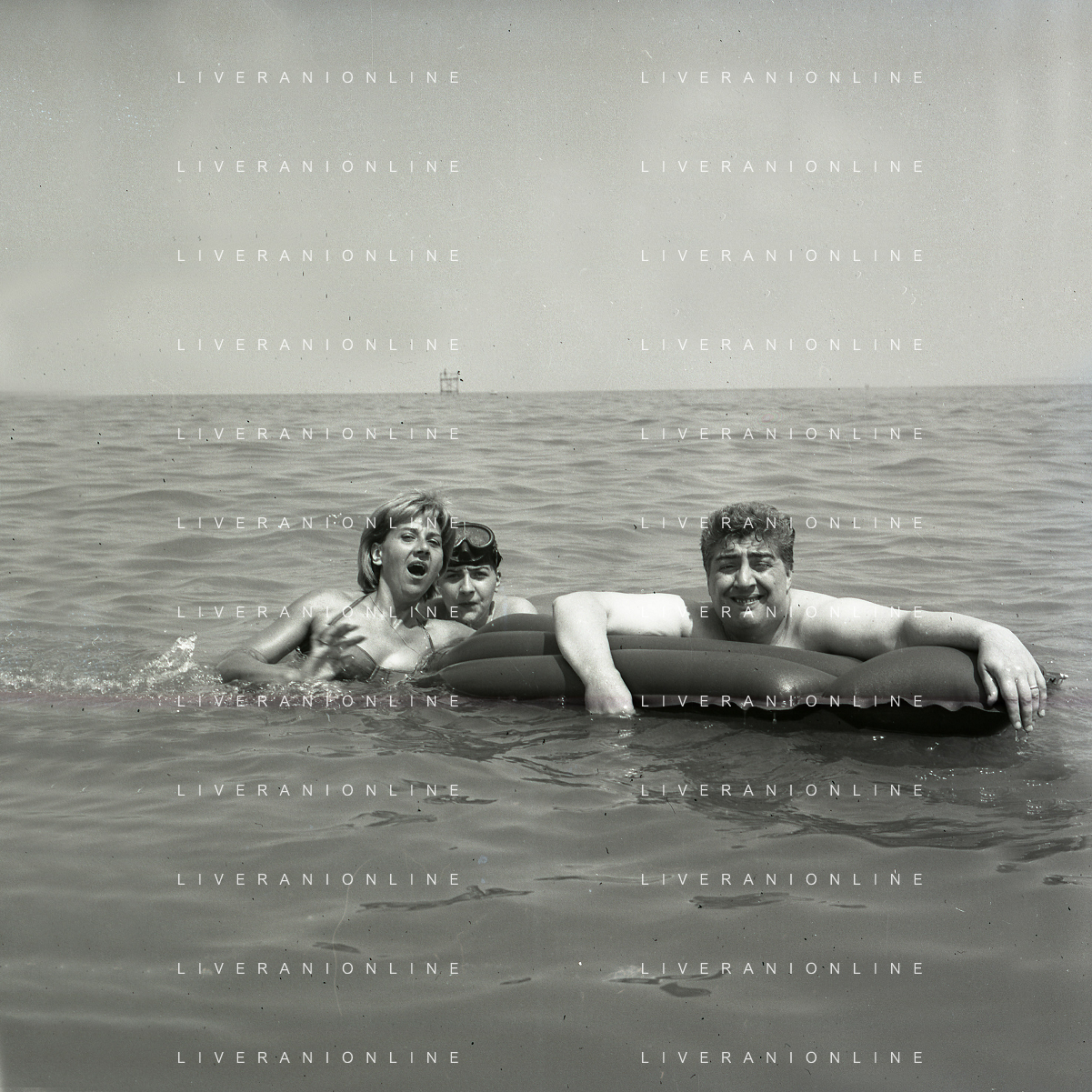 RETROSPETTIVA GINO BRAMIERI ATTORE COMICO CANTANTE NELLA FOTO GINO BRAMIERI A CESENATICO IL GIORNO 20-07-1963 CON IL FIGLIO CESARE E LA MOGLIE MARIA BARBIERI AG ALDO LIVERANI SAS