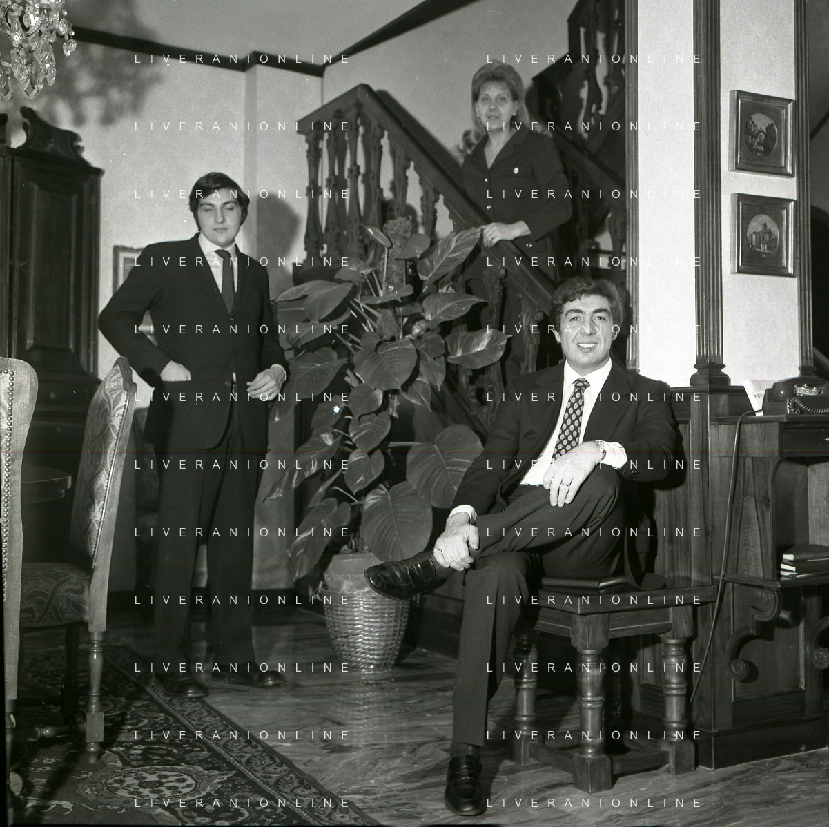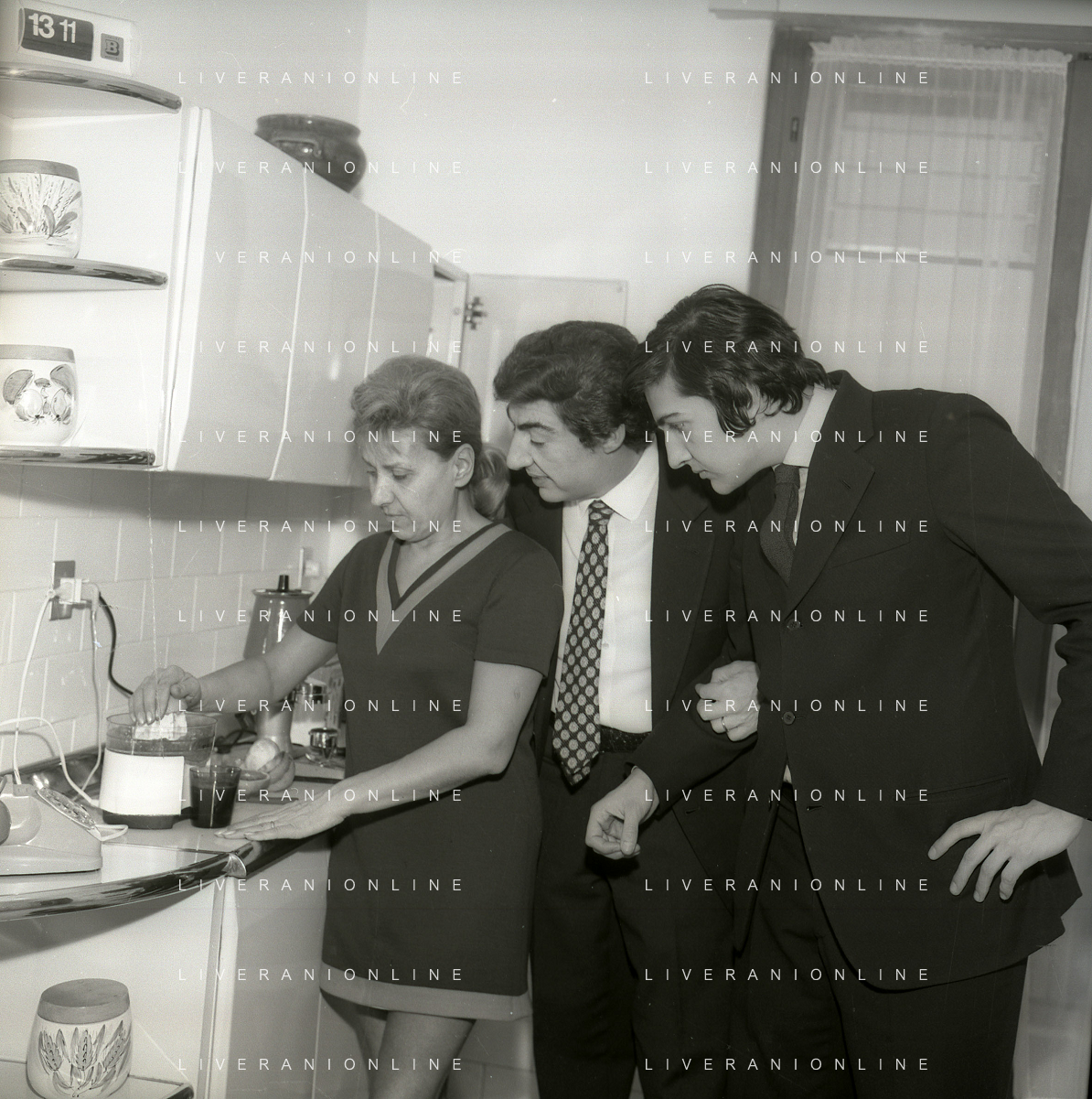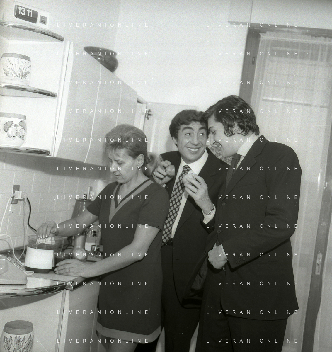 RETROSPETTIVA GINO BRAMIERI ATTORE COMICO CANTANTE NELLA FOTO GINO BRAMIERI A MILANO NELL'ANNO 1970 CON IL FIGLIO CESARE E LA MOGLIE MARIA BARBIERI AG ALDO LIVERANI SAS