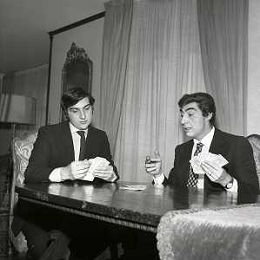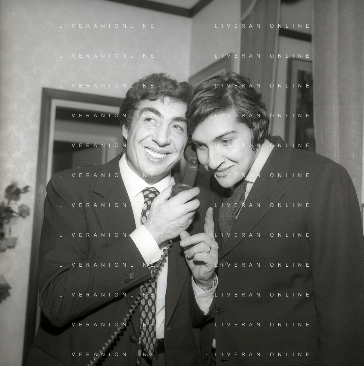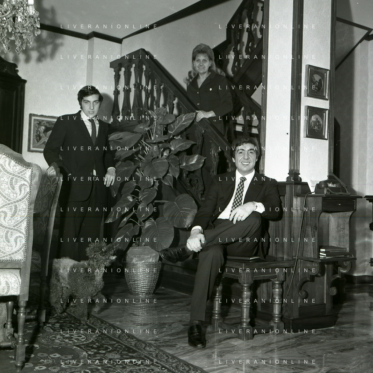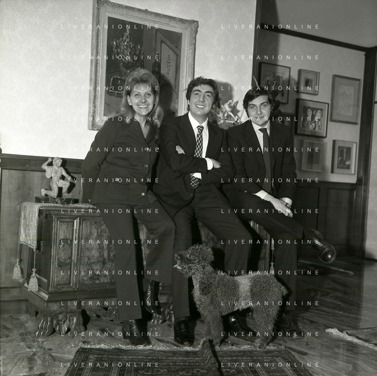 RETROSPETTIVA GINO BRAMIERI ATTORE COMICO CANTANTE NELLA FOTO GINO BRAMIERI A MILANO NELL'ANNO 1970 CON IL FIGLIO CESARE E LA MOGLIE MARIA BARBIERI AG ALDO LIVERANI SAS
