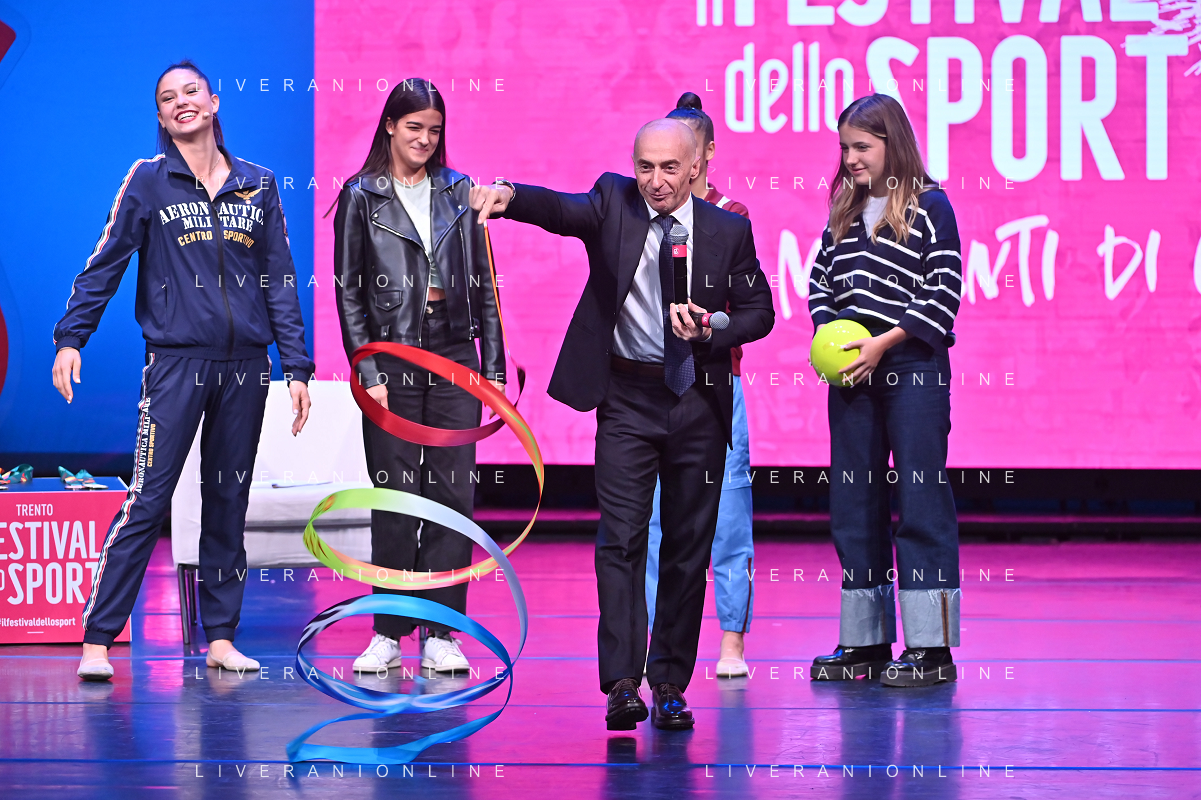 Festival dello Sport nella foto Jury Chechi Trento 22-09-2022 Teatro Sociale Il ritmo della vittoria, con le ginnaste Milena Baldassarri e Sofia Raffaeli foto Roberto Garavaglia/ag. Aldo Liverani sas