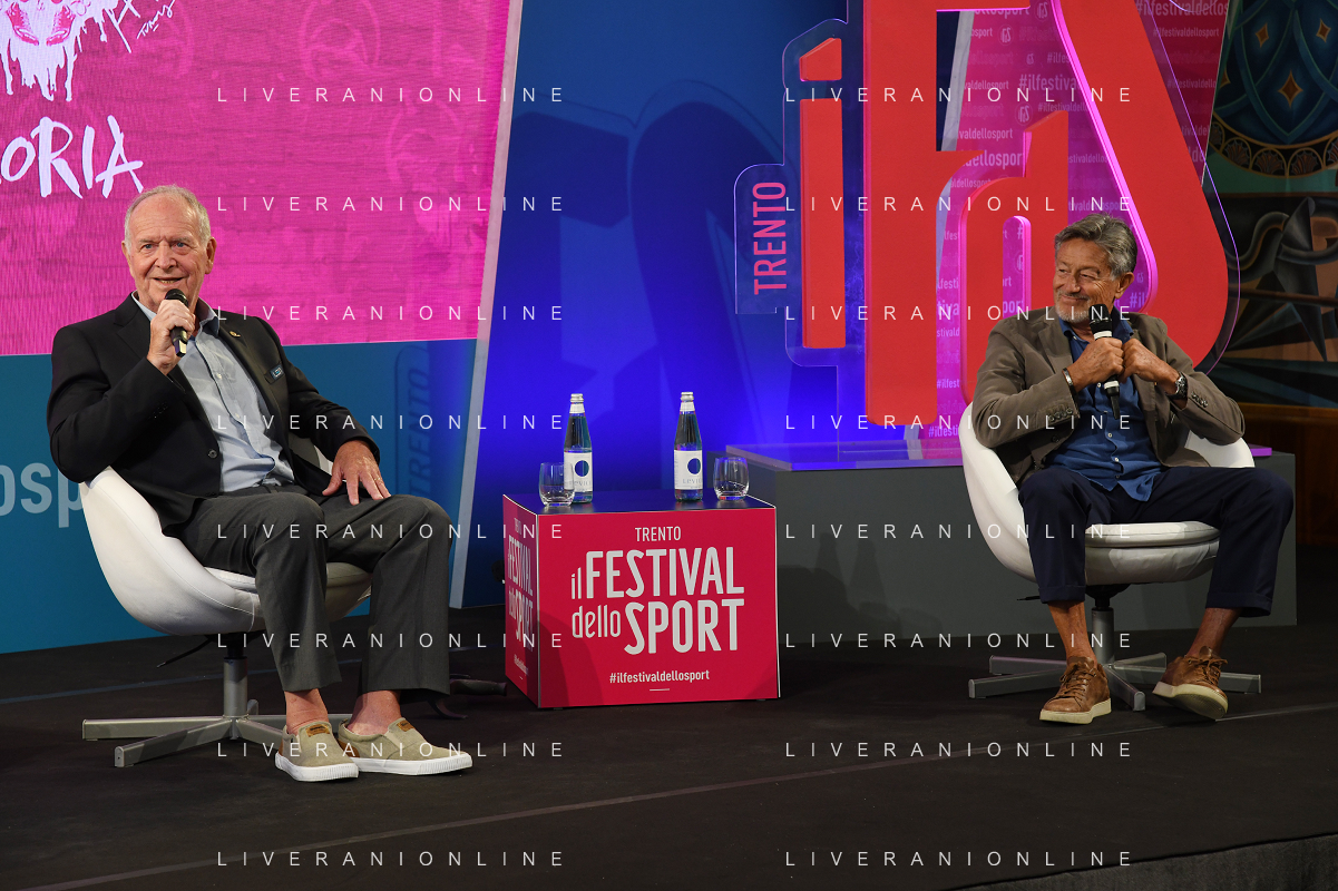 Festival dello Sport nella foto Klaus Dibiasi SX e Giorgio Cagnotto DX Trento 22-09-2022 Sala Depero presso Palazzo della Provincia Autonoma di Trento Cagnotto e Dibiasi un tuffo nella storia, con Giorgio Cagnotto e Klaus Dibiasi leggende dei tuffi foto Roberto Garavaglia/ag. Aldo Liverani sas
