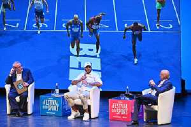 Festival dello Sport nella foto Stefano Barigelli direttore La Gazzetta dello Sport Trento 22-09-2022 Auditorium Santa Chiara Marcel Jacobs il ritorno del re, con Marcel Jacobs campione olimpico ed europeo dei 100 metri foto Roberto Garavaglia/ag. Aldo Liverani sas