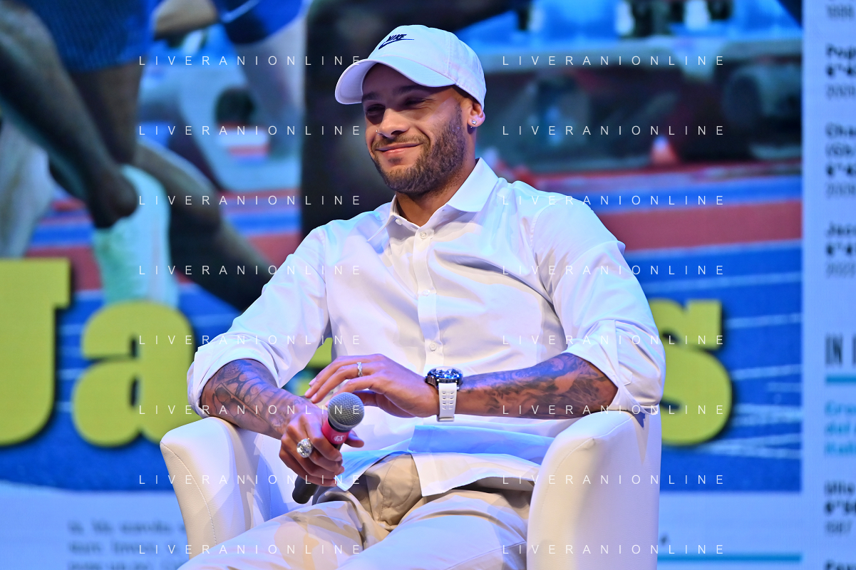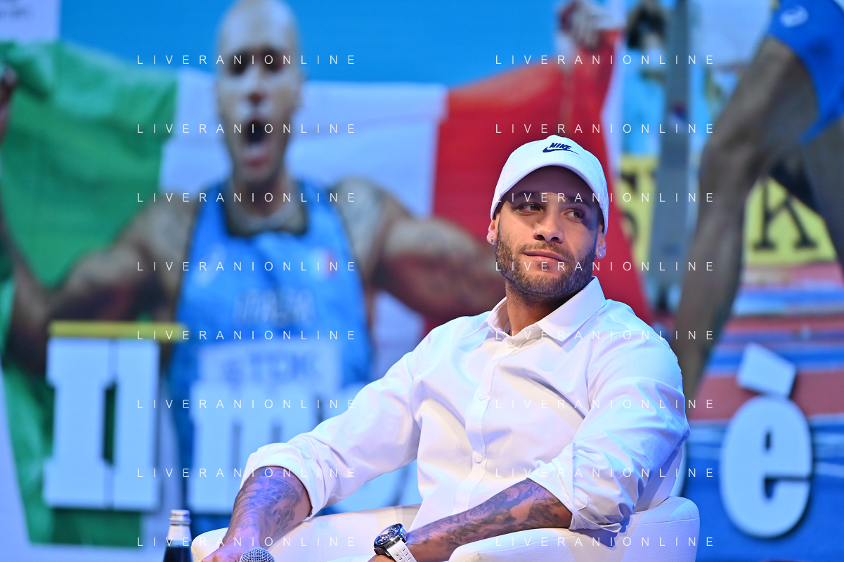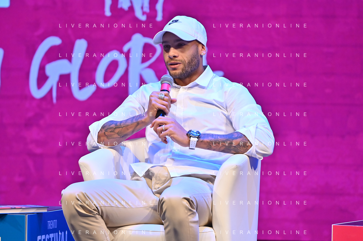 Festival dello Sport nella foto Marcel Jacobs Trento 22-09-2022 Auditorium Santa Chiara Marcel Jacobs il ritorno del re, con Marcel Jacobs campione olimpico ed europeo dei 100 metri foto Roberto Garavaglia/ag. Aldo Liverani sas