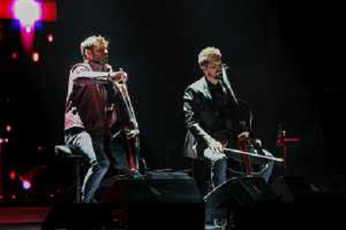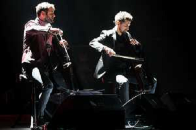 The two cellists Luka Sulic and Stjepan Hauser know by theirs stage name 2Cellos songs on a stage for the last time in their career during their World Tour at Arena di Verona in Verona, Italy, on 22 September 2022 ©Roberto Tommasini / Ag. Aldo Liverani Sas