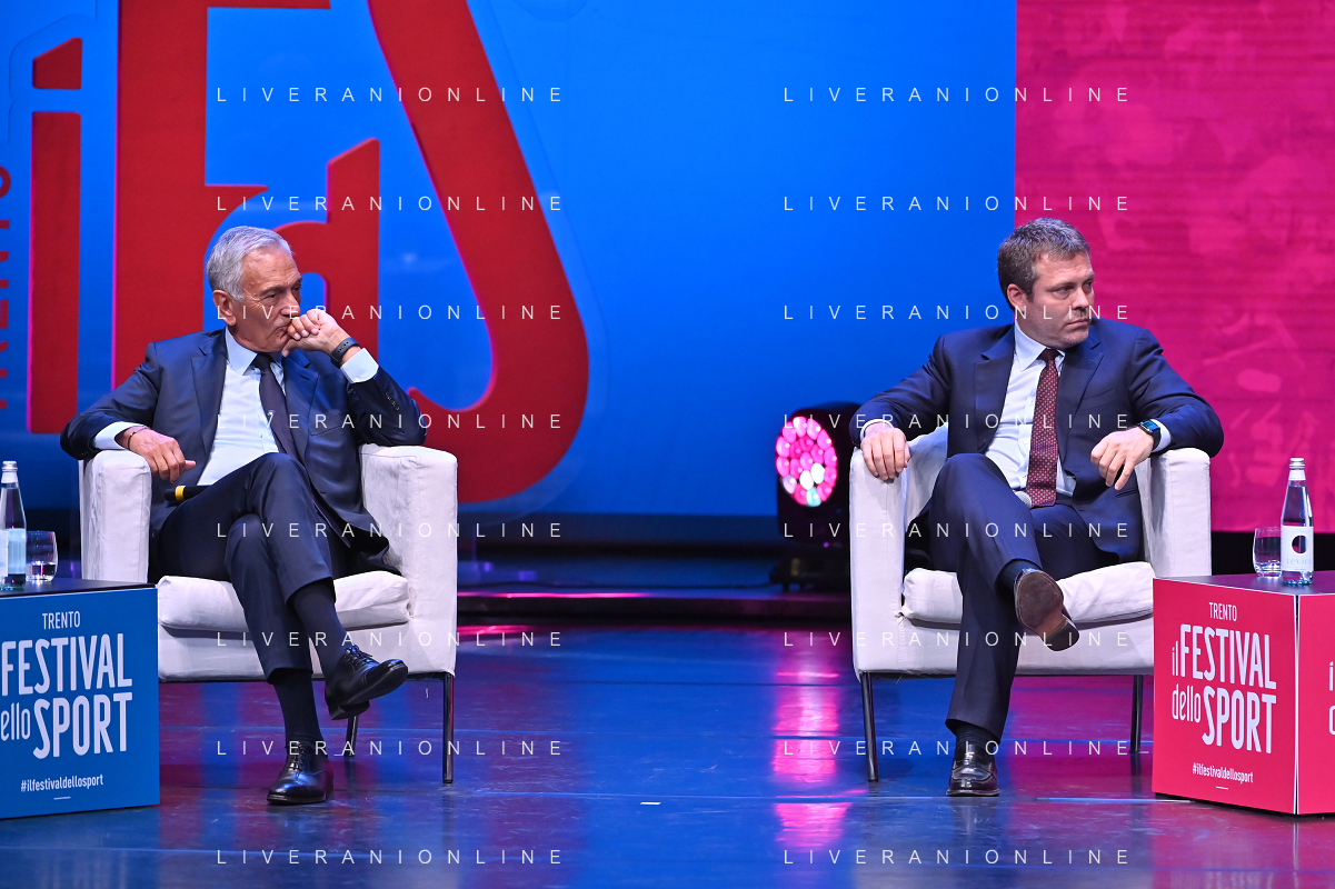 Festival dello Sport nella foto Gabriele Gravina presidente FIGC SX e Lorenzo Casini presidente Lega Serie A DX Trento 24-09-2022 Teatro Sociale Gli stati generali del calcio italiano foto Roberto Garavaglia/ag. Aldo Liverani sas/AGENZIA ALDO LIVERANI SAS