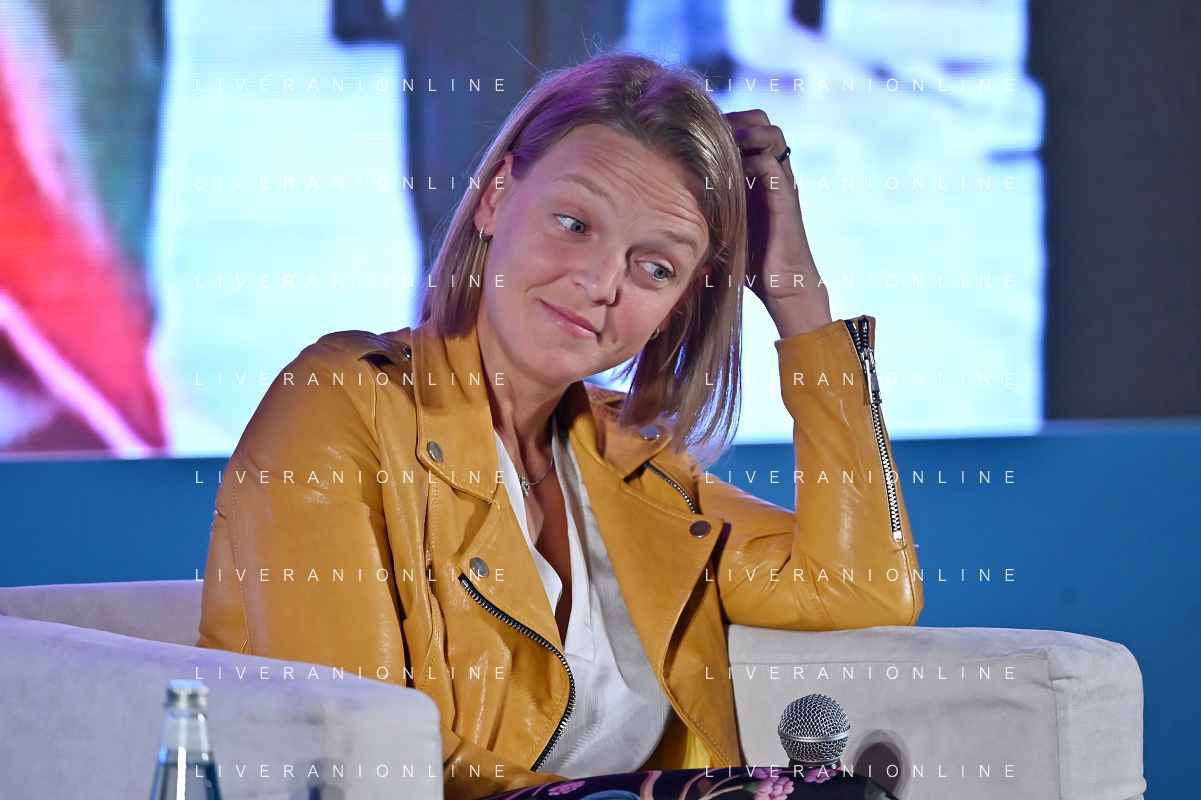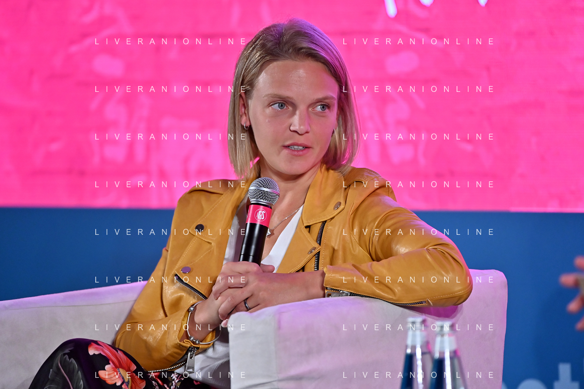 Festival dello Sport nella foto Arianna Fontana Trento 24-09-2022 Palazzo della Regione Fontana e Lobello la regina del ghiaccio, con Arianna Fontana pattinatrice di short track e Atnhony Lobello suo allenatore e marito foto Roberto Garavaglia/ag. Aldo Liverani sas/AGENZIA ALDO LIVERANI SAS