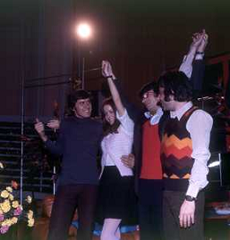 RETROSPETTIVA NICOLA DI BARI CANTANTE NELLA FOTO NICOLA DI BARI AL FESTIVAL DI SANREMO NELL'ANNO 1972 CON NADA MELANIMA, PEPPINO GAGLIARDI E GIANNI MORANDI AG ALDO LIVERANI SAS