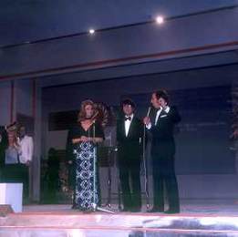 RETROSPETTIVA NICOLA DI BARI CANTANTE NELLA FOTO NICOLA DI BARI AL FESTIVAL DI SANREMO NELL'ANNO 1972 CON MIKE BONGIORNO E SYLVA KOSCINA AG ALDO LIVERANI SAS